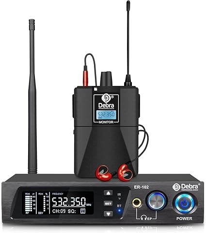 Sistema inalámbrico de monitorización intraauricular PRO UHF: Este sistema de monitorización intraauricular PRO UHF de D Debra Audio es ideal para escenarios, estudios de grabación y músicos. Con su bucle de enganche de fase PLL y chips IC de alta calidad, garantiza una señal más fuerte y estable, así como una mejor relación señal-ruido. Además, cuenta con un rango de frecuencia de 510 MHz-580 MHz y 100 frecuencias preestablecidas para evitar interferencias.