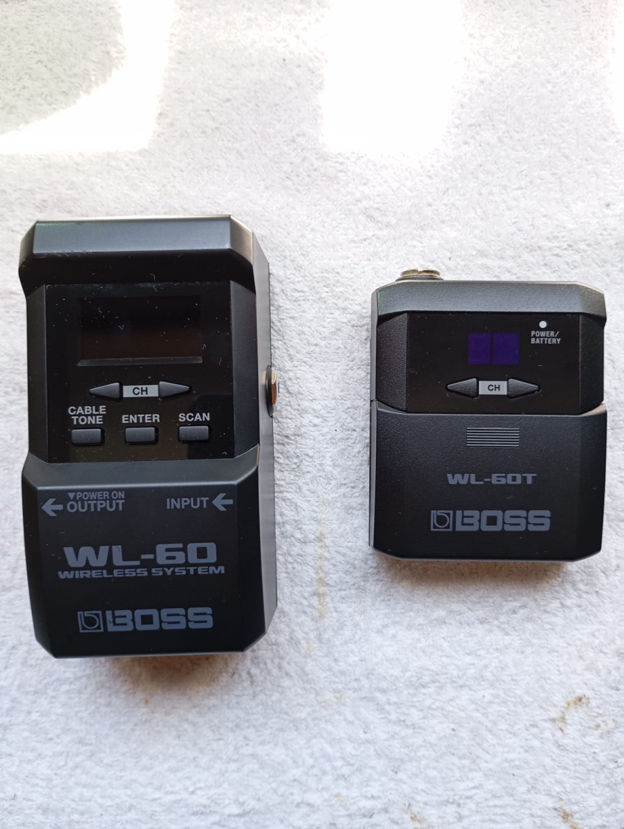Sistema inalámbrico de guitrarra Boss WL 60, con muy poco uso, no ha salido del local de ensayos. Tiene unas pequeñas marcas en el plástico como se observa en las fotos. Funcionando perfectamente.