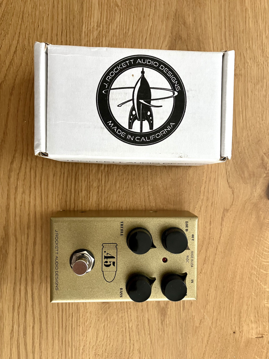 Descripción: Vendo pedal de overdrive J Rocket Caliber J45 en estado excelente. Va con su caja, la bolsita de plástico y el velcro con el que ha sido usado (se puede mandar sin velcro).