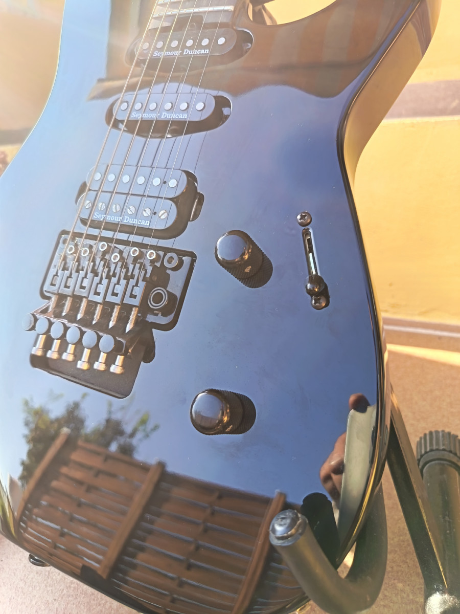La guitarra esta impoluta, no tiene nigun golpe, solo polvo.(no son las mejores fotos)