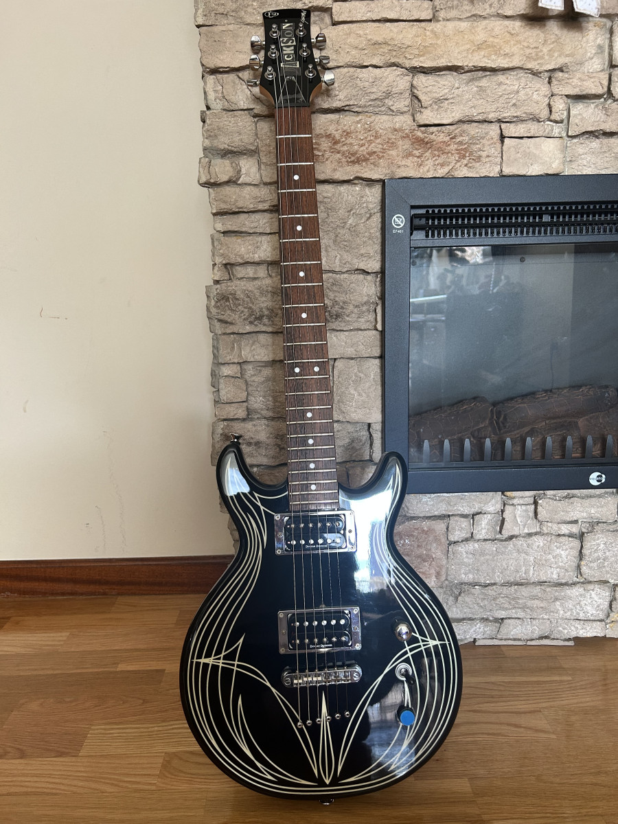 Vendo Jackson JJ4 ( Jackson Junior ) Scott Ian de Anthrax, con diseño tattoo americano estilo pinstripe.