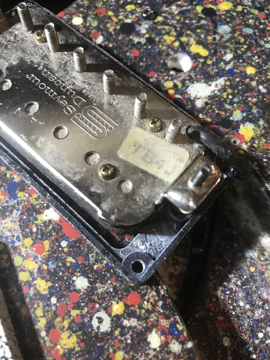 Equipada con una Seymour Duncan TB4J fabricada por Maricela "MJ" Juárez en los 80.