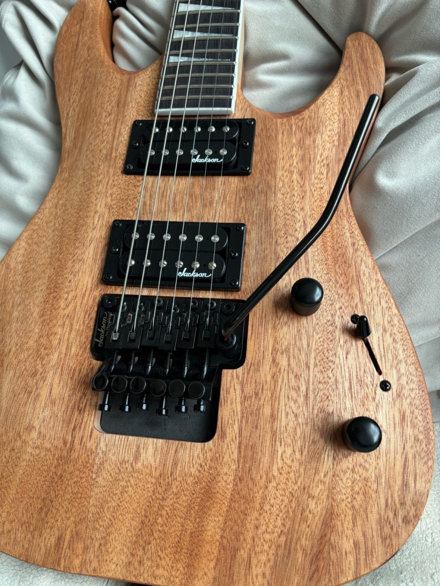 Guitarra eléctrica Jackson JS32 Dinky DKA con un acabado en madera natural.