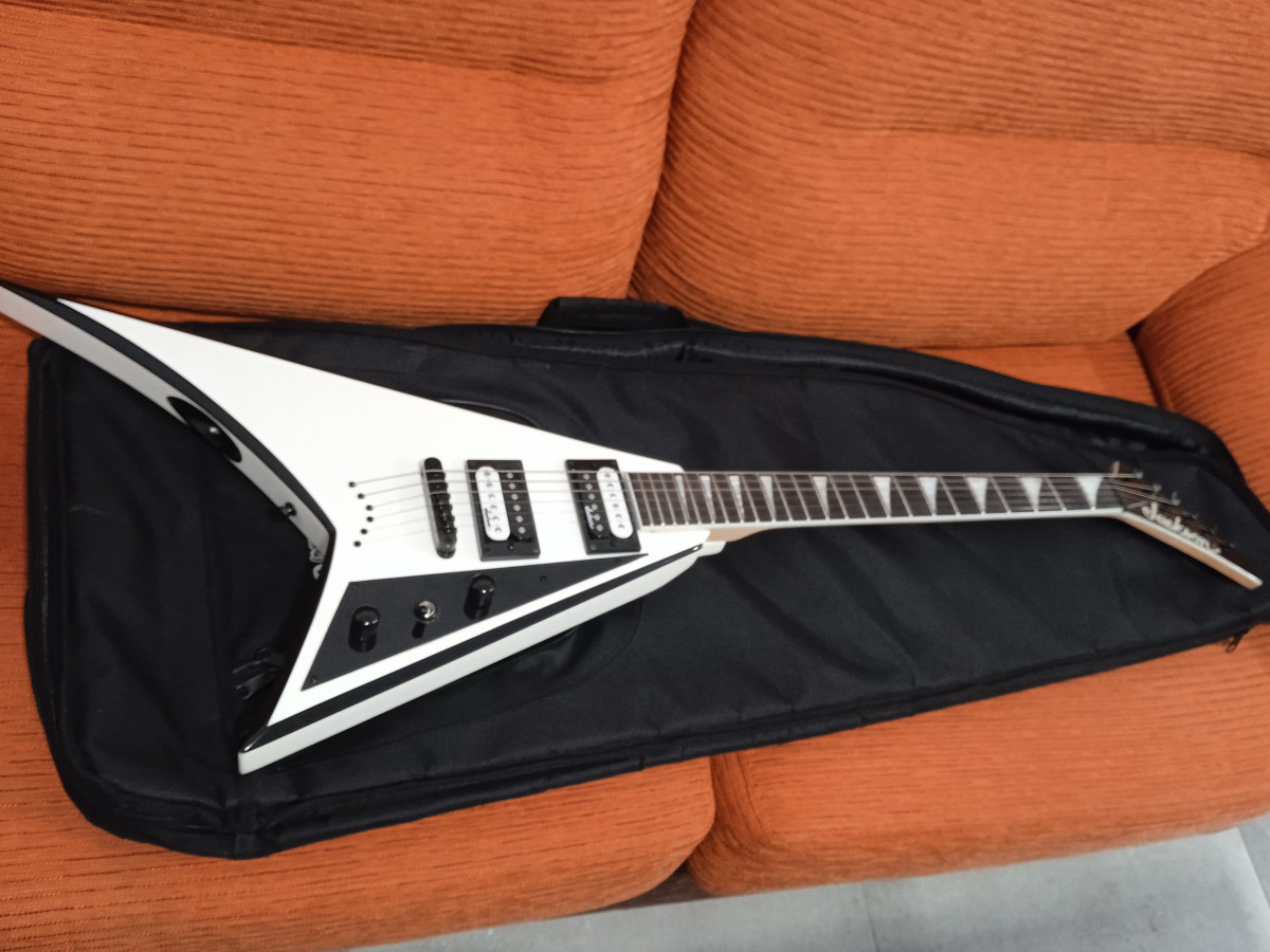 Guitarra eléctrica Jackson JS32T Rhoads, en blanco y negro. Está en muy buen estado.