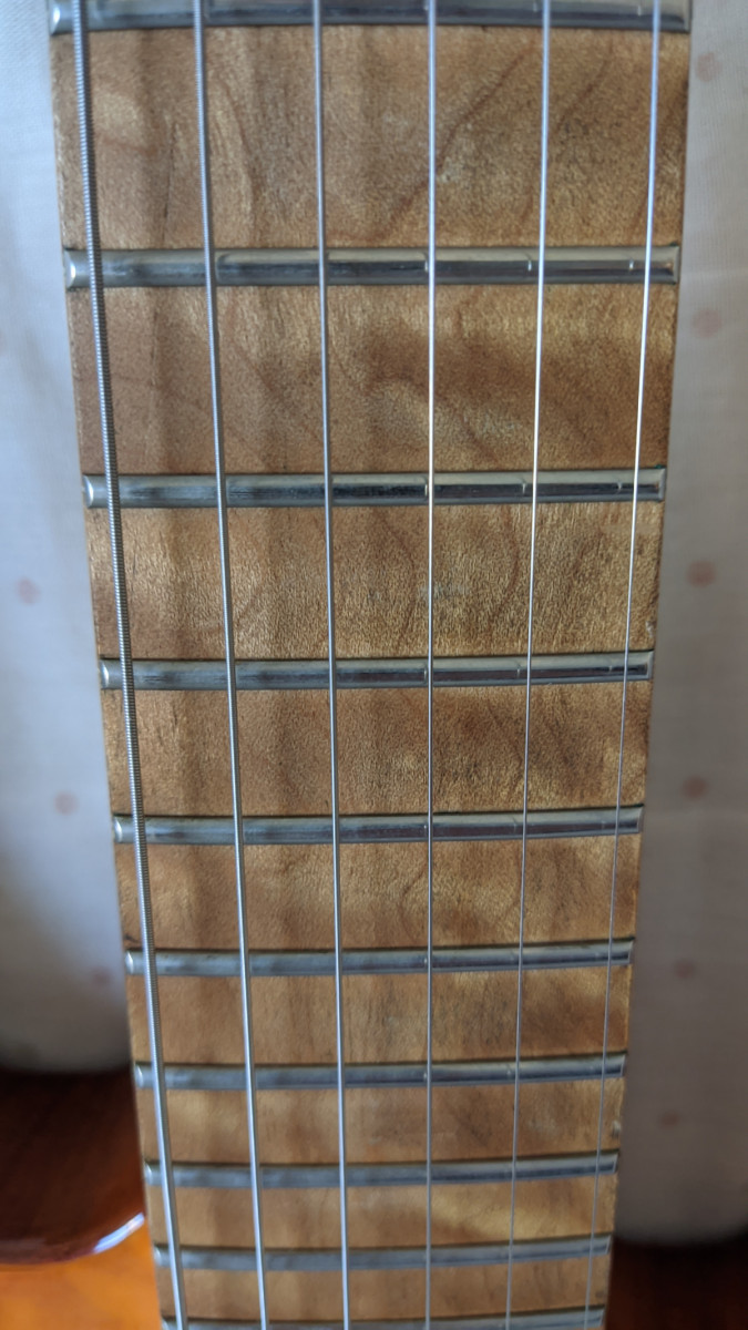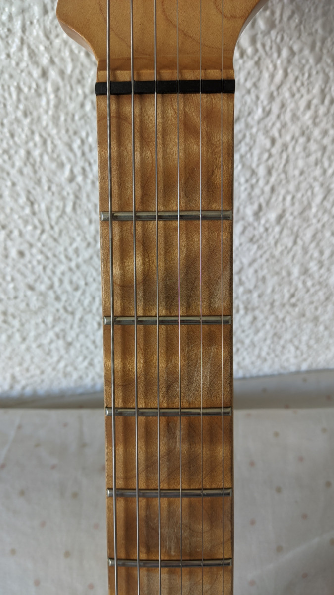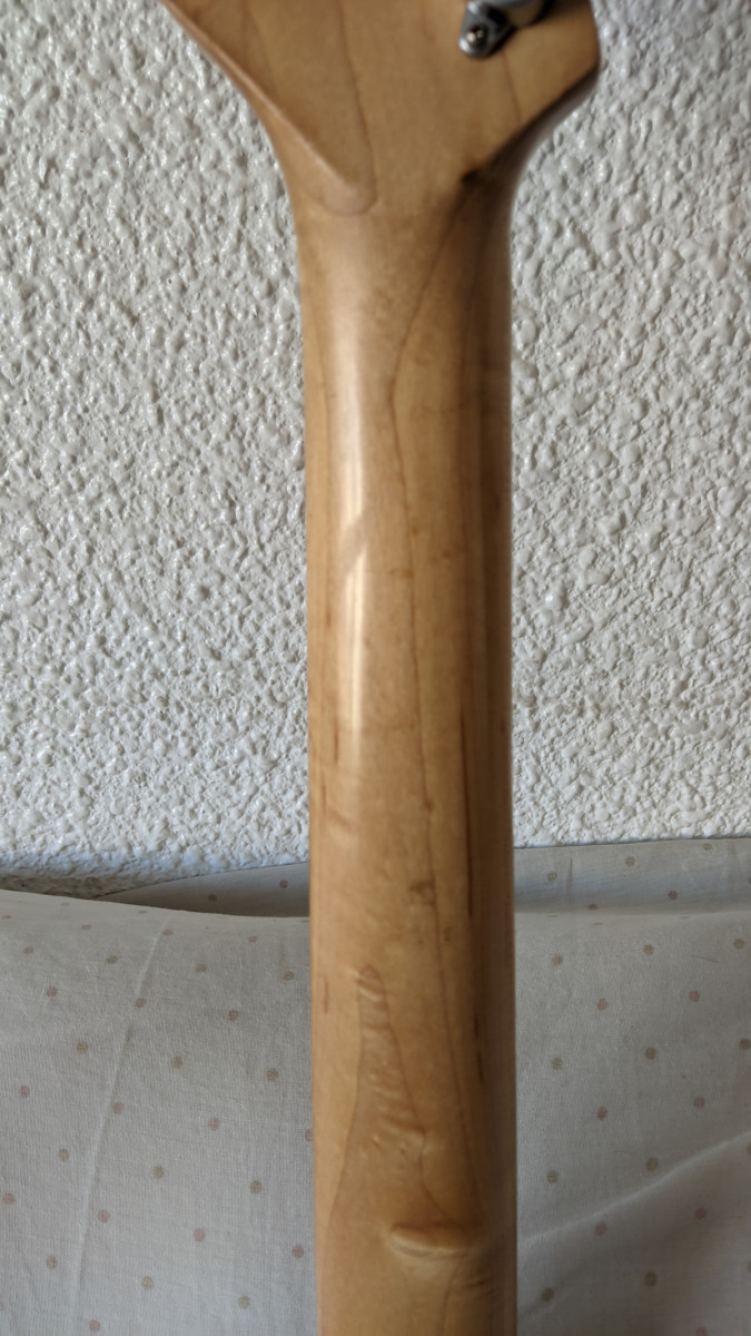 Cuerpo de caoba, mástil de arce,y diapasón de arce tostado.24 trastes.