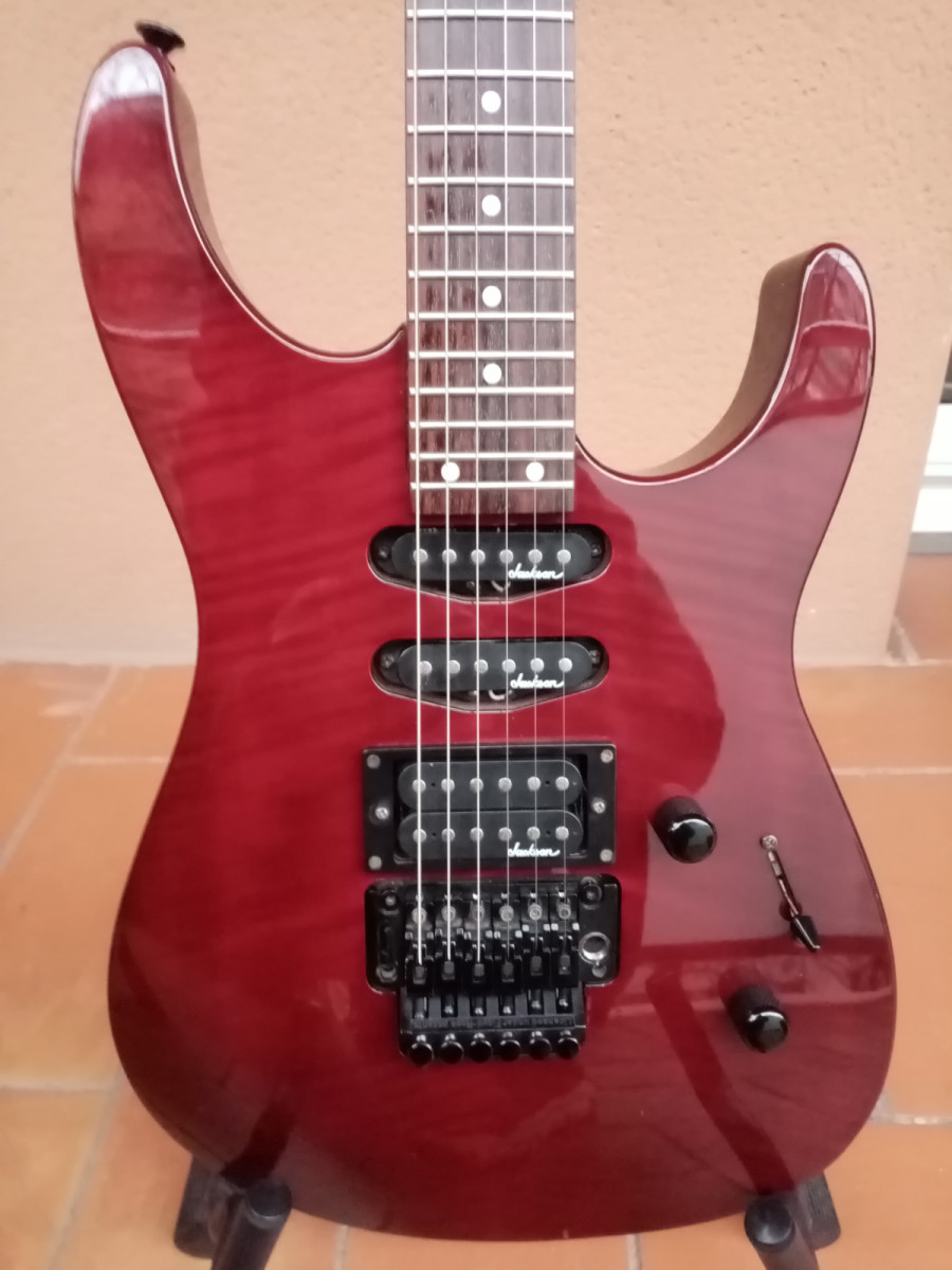 Vendo esta Jackson Performer PS2 fabricada en Japón en 1996 en un estado increíble para sus 29 años. Toda original, tiene el floyd bloqueado, se puede revertir sin problema (entrego palanca). Solear en ese mástil de 24 trastes es una gozada, suena divina. Pocas vas a ver en un estado tan clean, me ha costado hacerle fotos porque brilla como un espejo, trastes impolutos. Funda Stagg tipo mochila incluida. Precio 475 euros no negociables, trato en mano en Barcelona, no me interesan cambios.