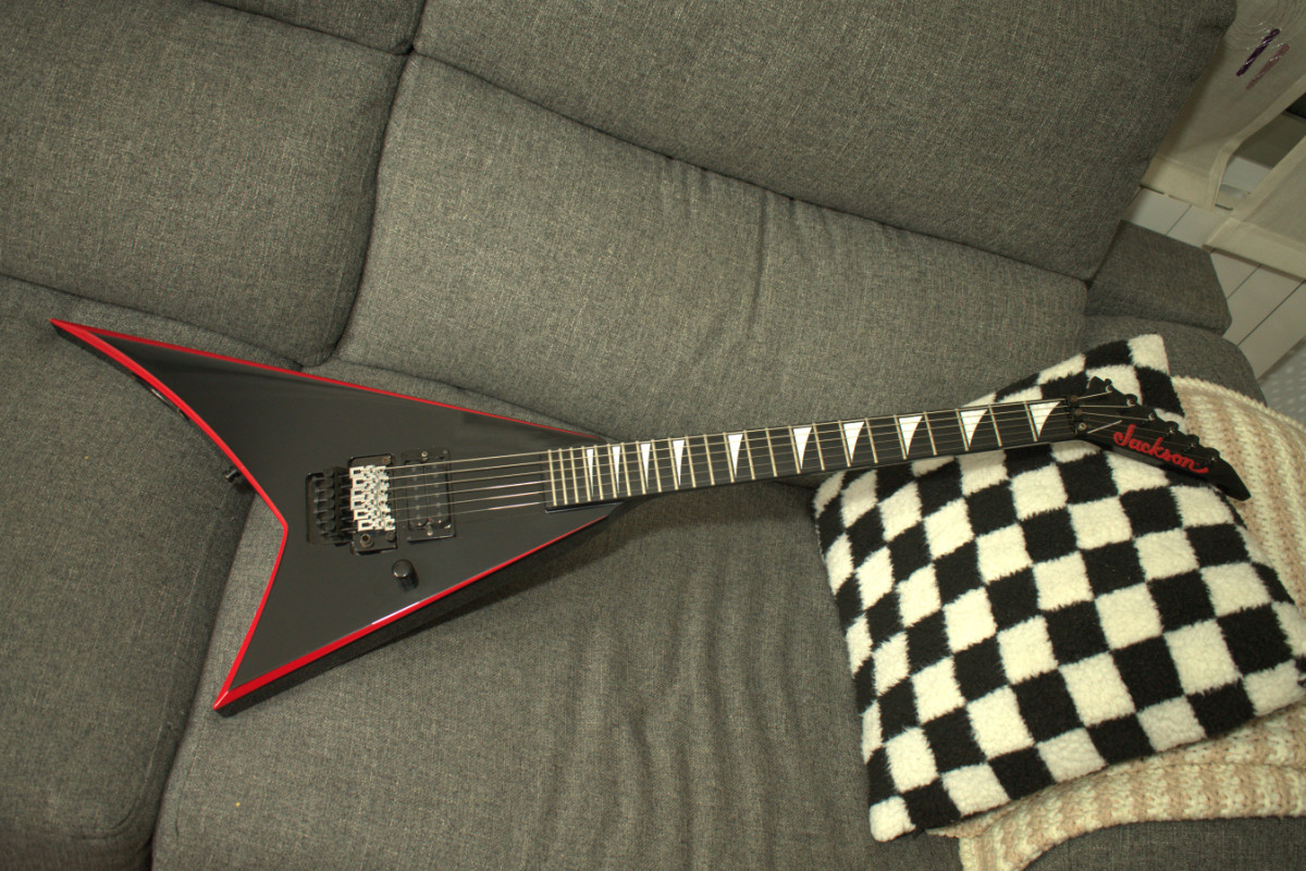 Vendo preciosa Jackson RR 24 del 2009 por exceso de equipo. NO CONFUNDIR con las series pro actuales, esta es made in Japan y está a otro nivel. La guitarra ha sido usada pero se ha cuidado. "Dings" típicos de las flechas en punta de la pala y los dos picos de la V. Para ser una flecha, está bastante bien.