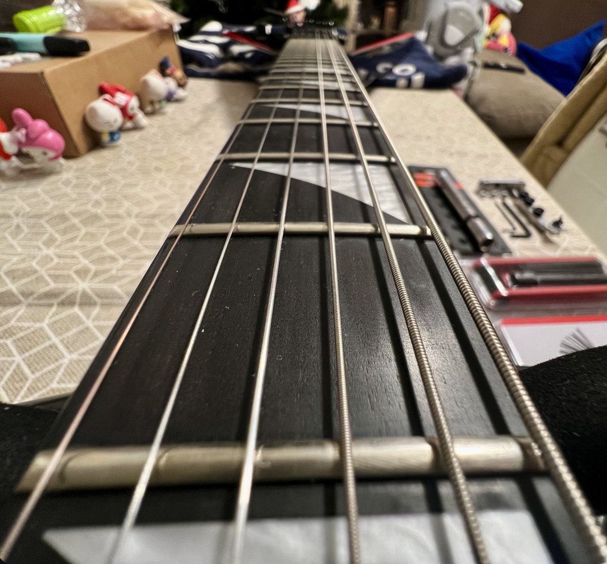 • Marcas normales de uso en los picos (inevitables en este tipo de guitarra)
