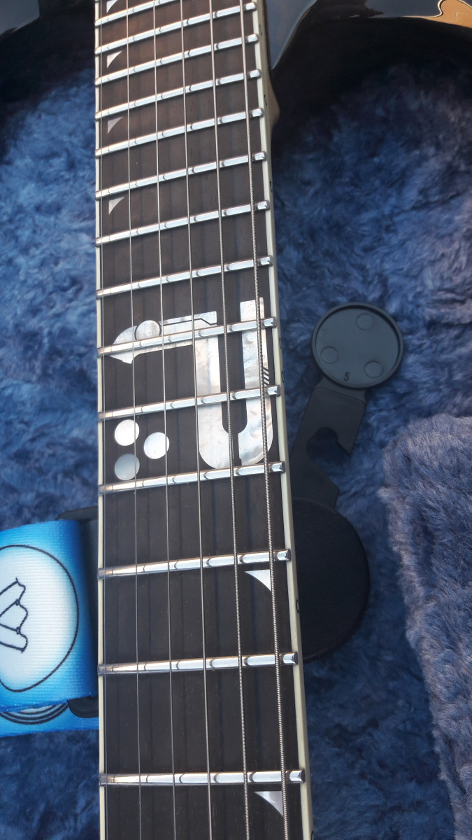 La que vendo es el modelo más TOP, con inlay en el traste 12, pastillas con cover, tapa de atras con logo, correa exclusiva ... una joya.