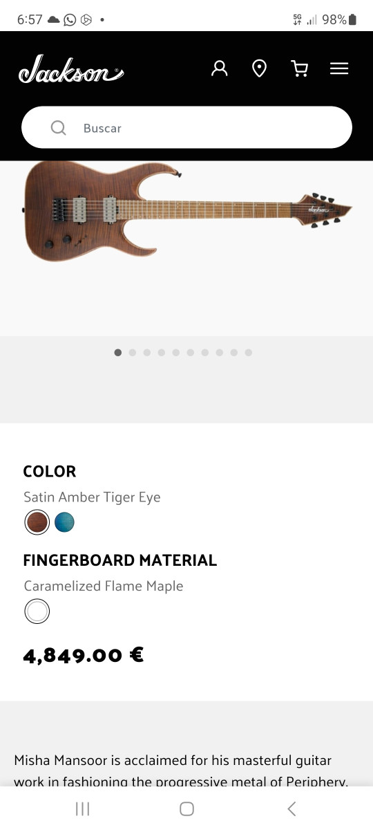 Por cierto, este color y acabado en vivo es una pasada y ahora no veo que se comercialice, tendrias que encargarlo en la Custom Shop de Jackson.