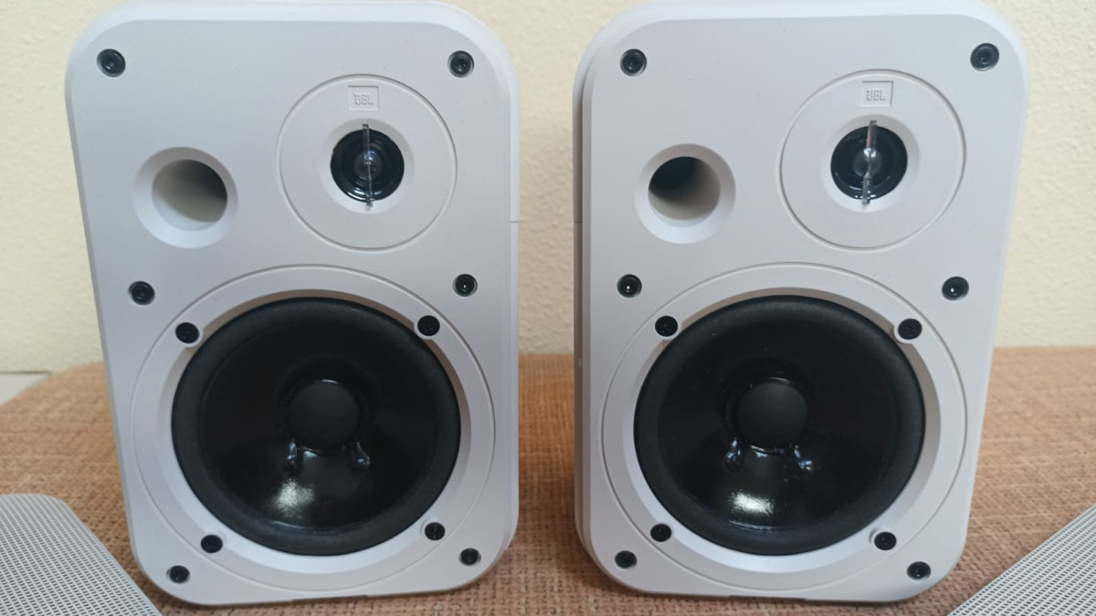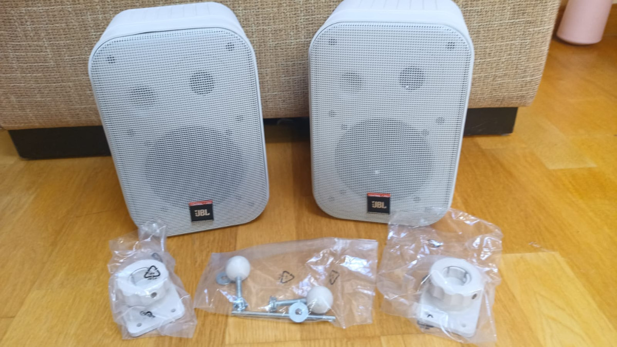 -Altavoces JBL Control 1 Pro (son pasivos: necesitan amplificador) en color blanco. Con caja original, instrucciones y soportes de montaje en pared.