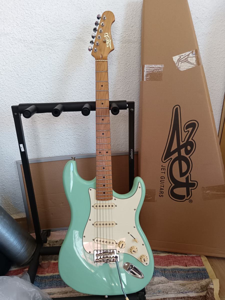 Jet Strato mejorada con afinadores de bloqueo y pastillas Fender 57/62 (conservo las originales). Está nueva, apenas 3 meses. Mástil sublime