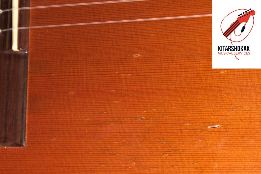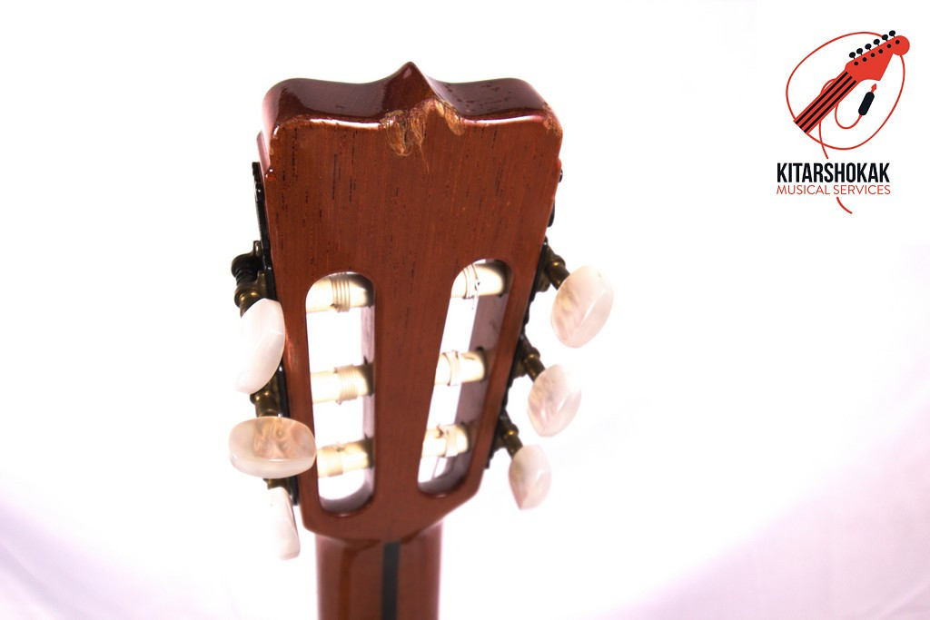 Estado: bueno, con marcas del uso. Tiene una fisura superficial (no profunda) en la parte trasera de la tapa y algunas marcas en la pala. Tuvo pegatinas en el diapasón y después de la limpieza quedan algunas marcas en él. Está puesta a punto en Noviembre 2024 con cuerdas nuevas Savarez. Lista para afinar, tocar y disfrutar. Las fotografías son parte de la descripción y del artículo concreto que recibirás, no otro similar.