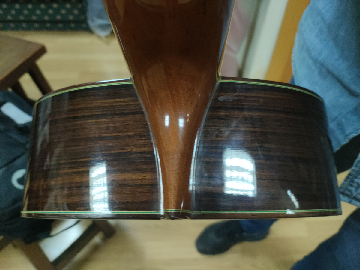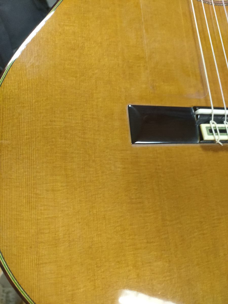 Las maderas que conforman esta guitarra flamenca de concierto cedro para la tapa armónica, con un veteado precioso y uniforme y palosanto de india para aros y fondo, unas maderas de 1ª muy escogidas y con un proceso de secado y curación óptimo