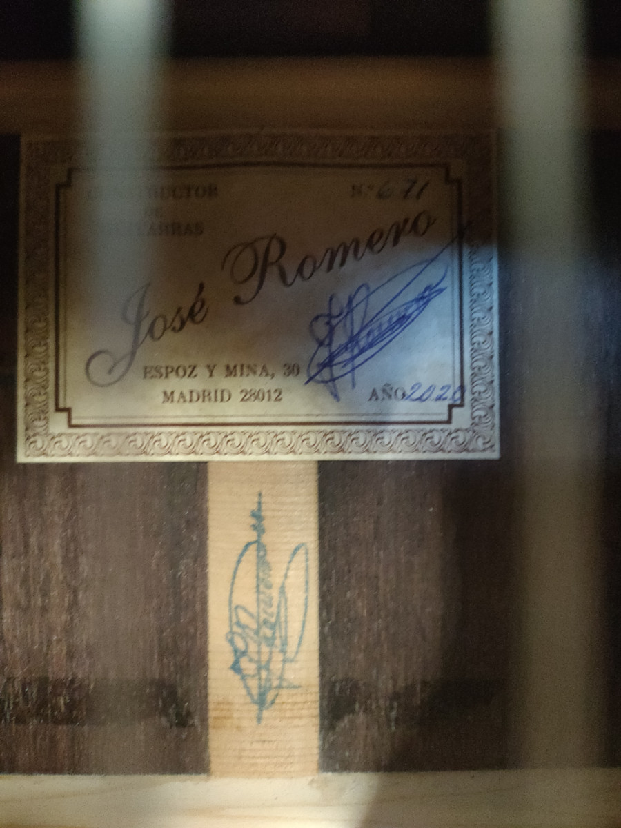 Esta guitarra flamenca está construida por el maestro guitarrero José Romero de Madrid en el año 2020. Considerado uno de los mejores artesanos de nuestros días, aprendió el oficio en el taller de José Ramírez, en el que trabajó durante 15 años en el rango de «Maestro Artesano». En el año 1983 decidió abrir su propio taller. Sus guitarras están totalmente hechas a mano.