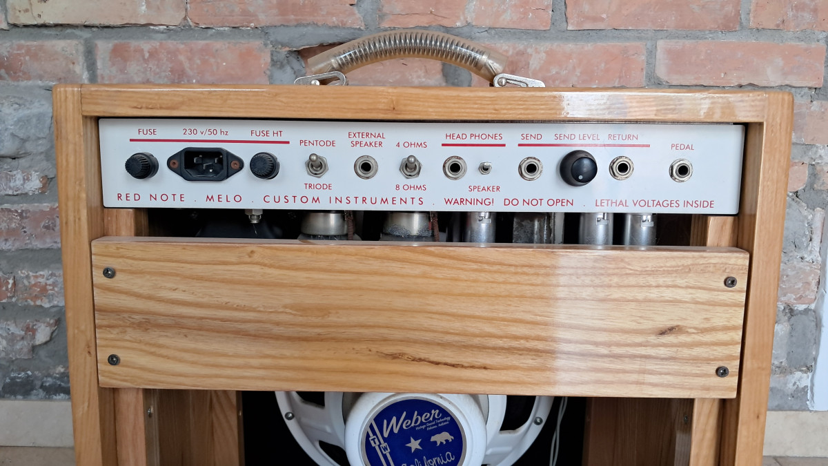 Selector pentodo o triodo, loop de efectos, salidas altavoz seleccionables a 4 y 8 ohm. 2 válvulas 6L6GC, salida auriculares, interruptor para conectar/desconectar el altavoz,.