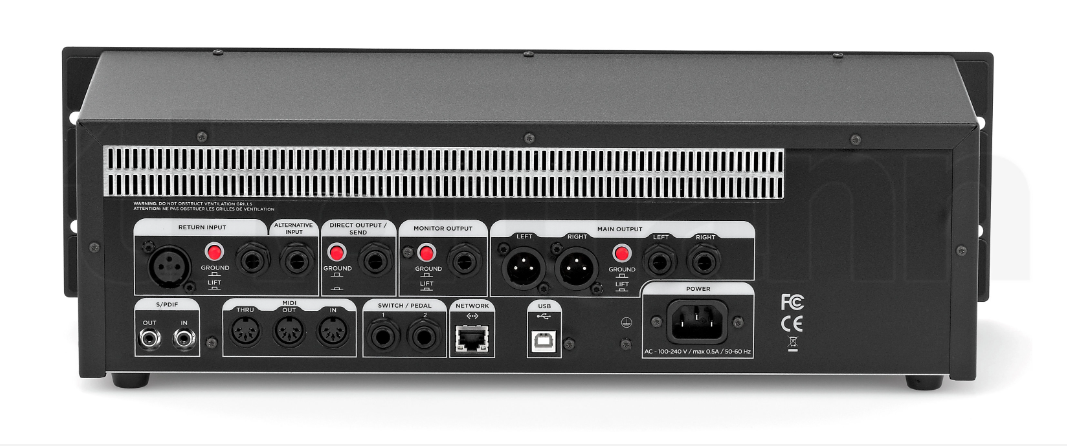 Medidas (An x Al x Pr): 483 x 139 x 220 mm, formato 19"/3U (precisa al menos un rack de 4U al no poder desmontarse los pies de goma por motivos de ventilación)