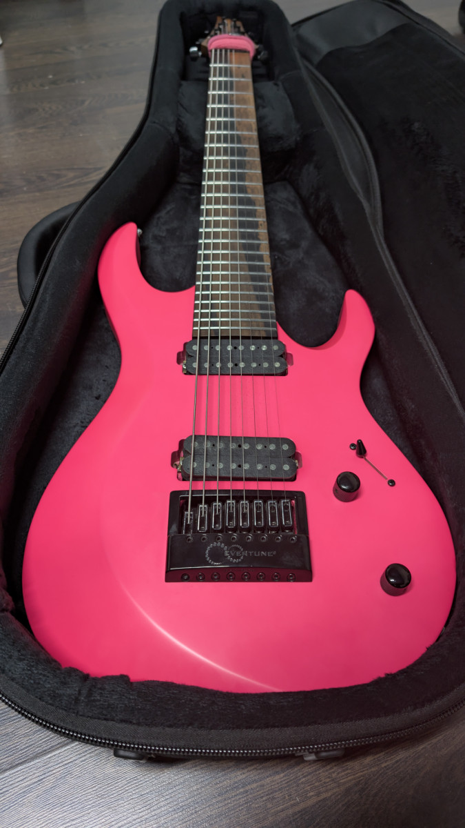 Vendo está Kiesel Aries de 8 cuerdas en color Barbie o rosa fluorescente 😂, con un poco de historia.