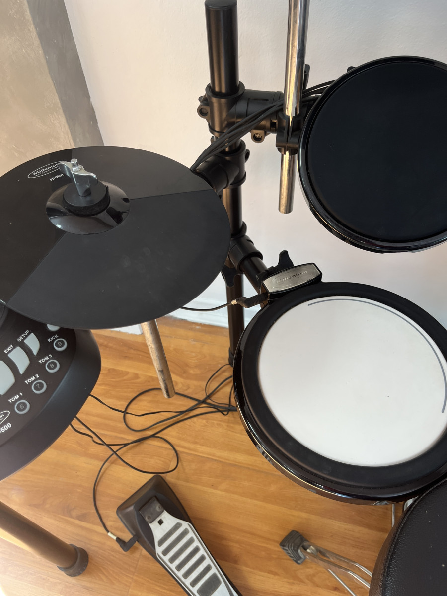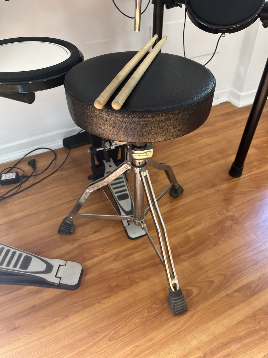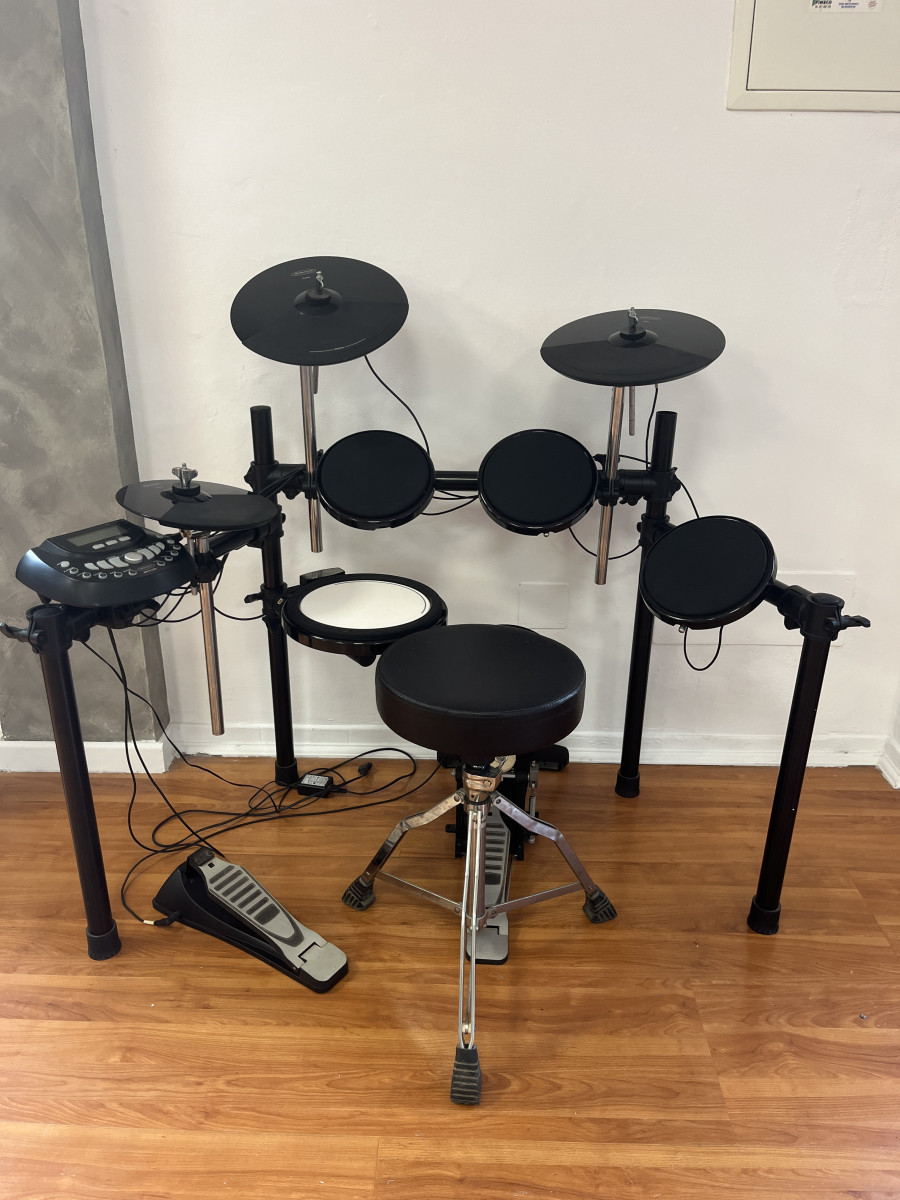 A la venta este kit que incluye batería electrónica+asiento+juego de baquetas. Ideal para tocar en casa, para iniciarse en el mundo de la bateria o para grabar demos sin hacer ruido.