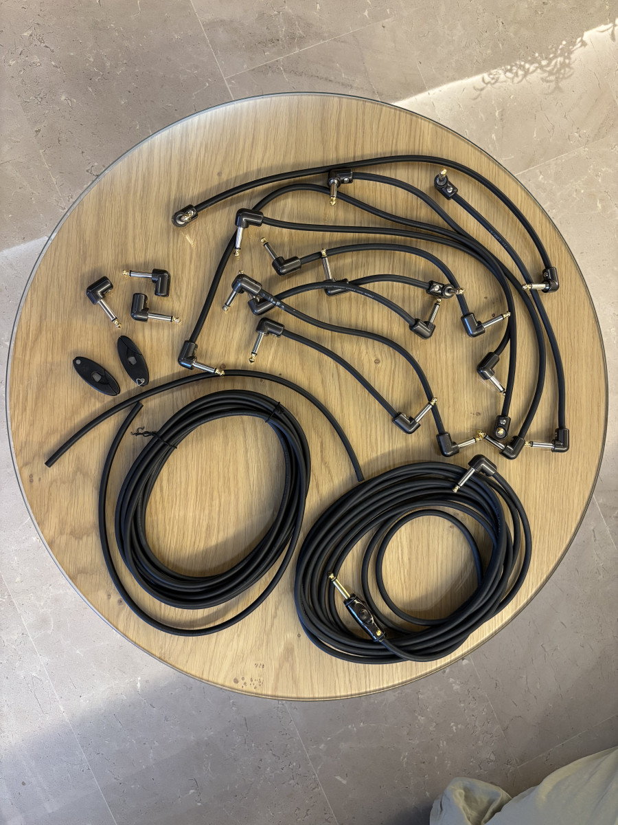Vendo kit de cables D’Addario PW para adaptar a medida de cualquier pedalera sin necesidad de soldar. Los compré entre 2016 y 2018 por unos 200€ y los utilicé durante ese tiempo para unos cuantos conciertos en solitarios. Incluye 22 cabezas en L, una recta, unos 7 metros de cable y dos guillotinas para cortar cable. Todo en perfecto estado. Pido 90€.