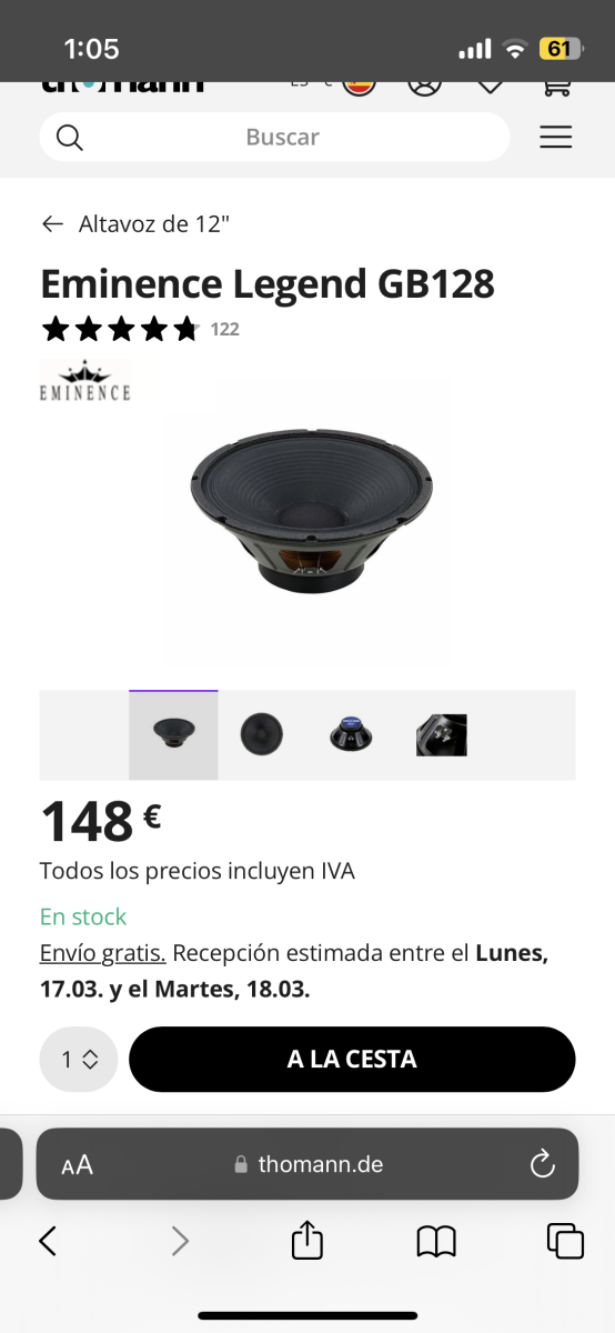 Altavoz Eminence Legend V1216 en Gipuzkoa98 €