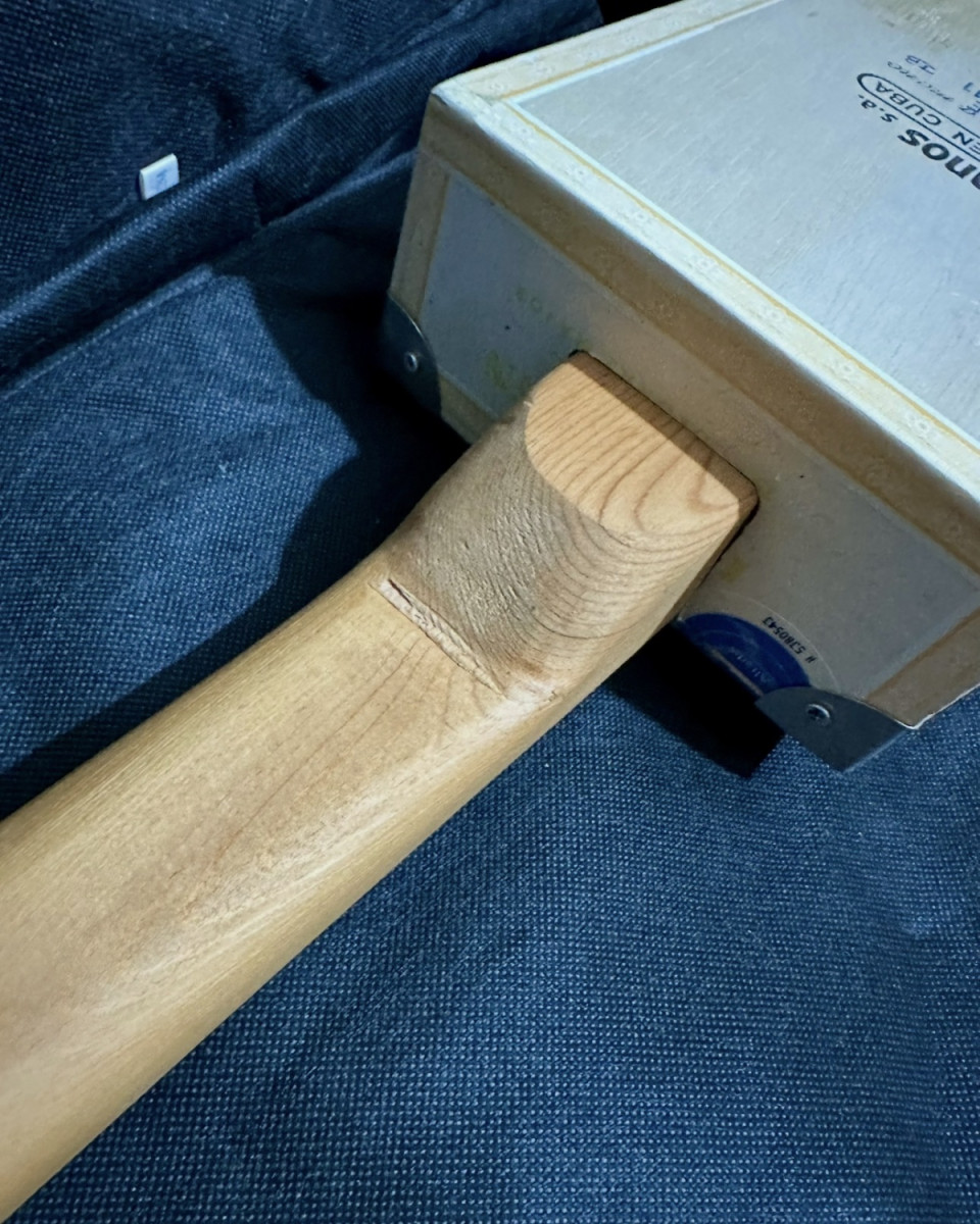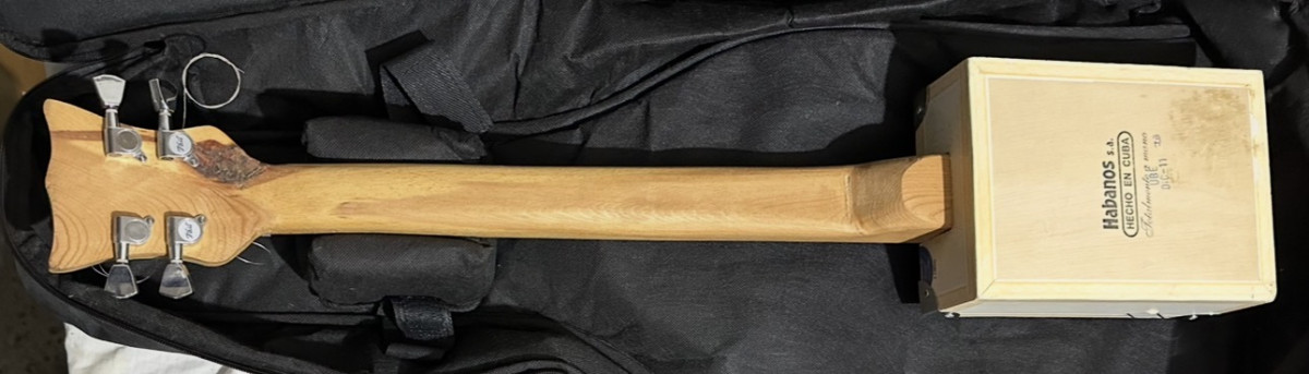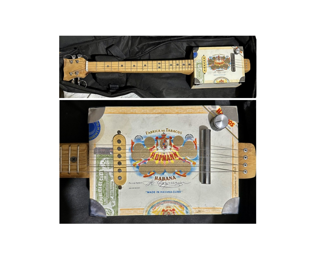 LCA Guitars, cigar box lap steel de cuatro cuerdas con una bonita caja de habanos, cambio por bigsby B12 plateado original o similar, vibrola, etc. También vendo. Es un modelo de los iniciales de allá por 2013. Tosco, rural, con elementos que Luisito tomó de aquí y de allá, muy auténtico. Puro sonido delta. No me preguntéis por especificaciones, porque ya no las recuerdo. He tomado una foto del propio Luis donde se ve el bicho junto a otros. Mide en total, 77,5 cm. de largo. Habría que ajustarlo un poco pues lleva muchos años guardado, aunque no requieren mucho mantenimiento, son muy duros. (guitarra bajo banjo lap steel resonator resonadora dobro blues slide rock country).