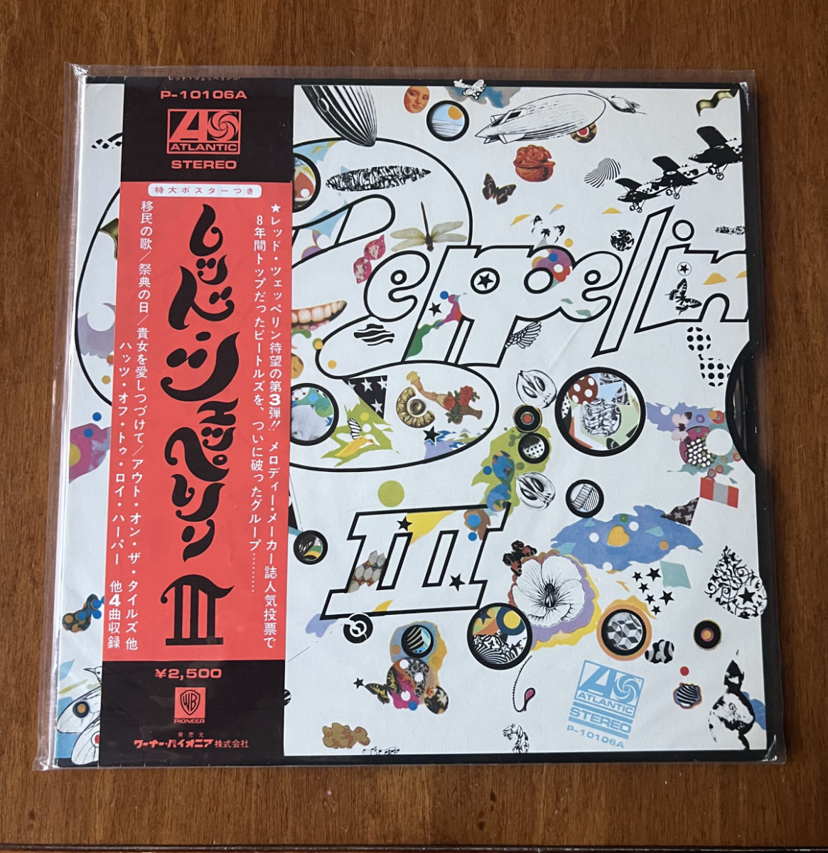 Vinilo LP de Led Zeppelin III, edición japonesa con obi y póster.