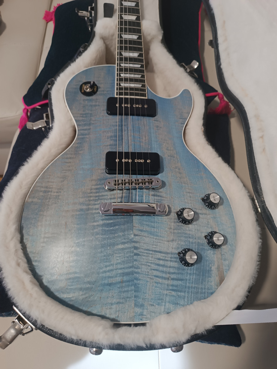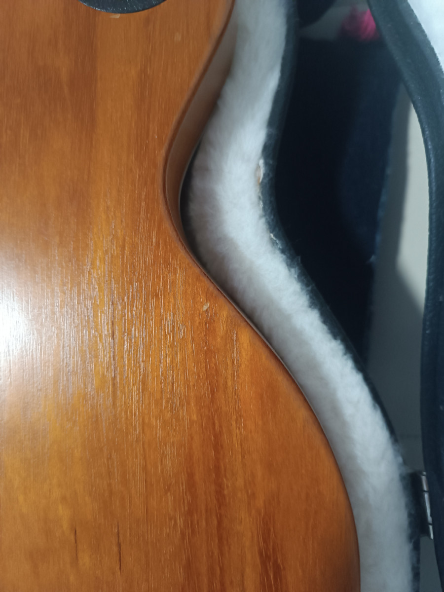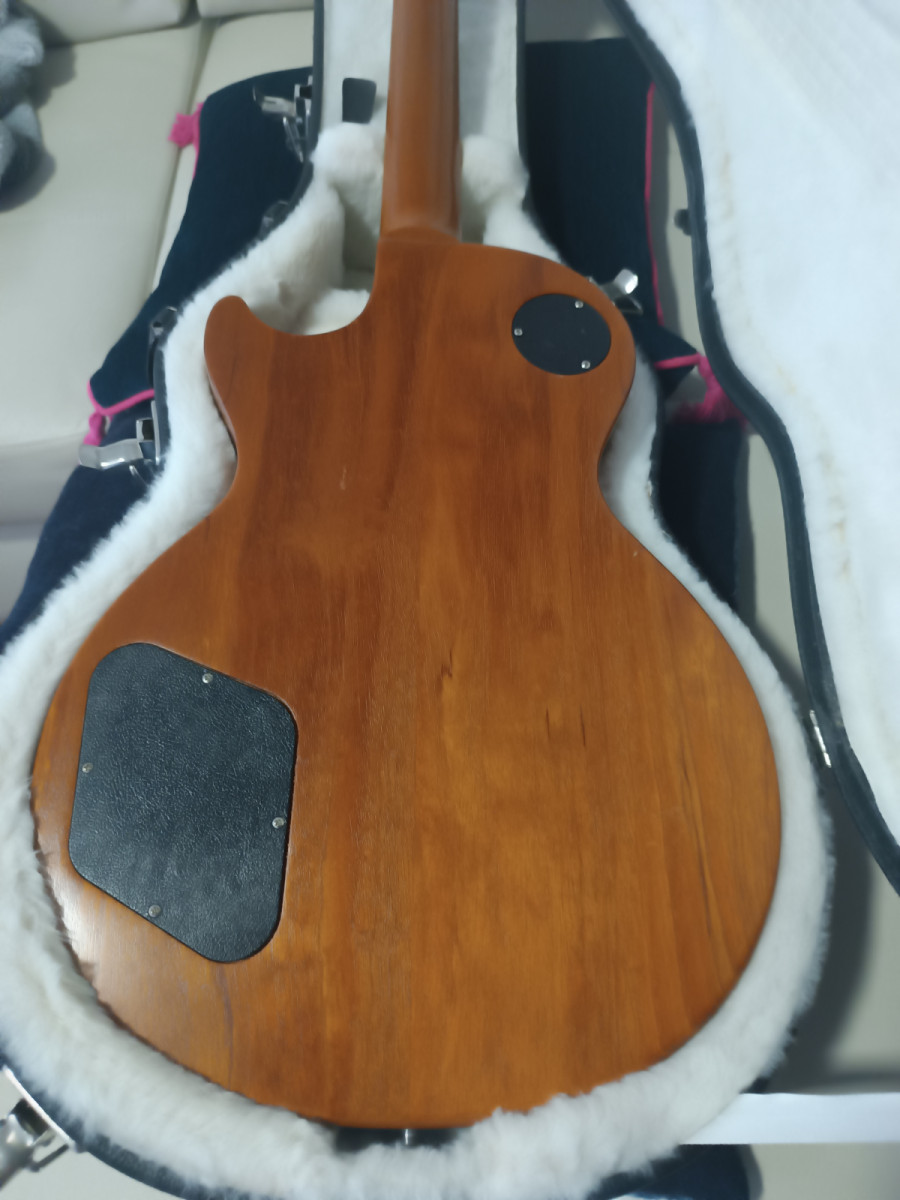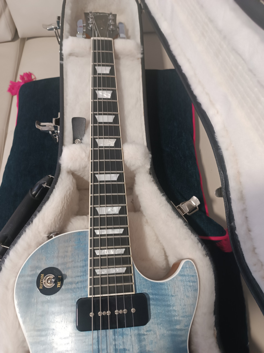 (1) La funda no es la original, sino que es de otra Les Paul de 2013 (esta guitarra la obtuve por un cambio por esa otra LP de 2013 y el dueño anterior prefería cambiar sólo las guitarras y que cada uno se quedase con la funda de la suya).