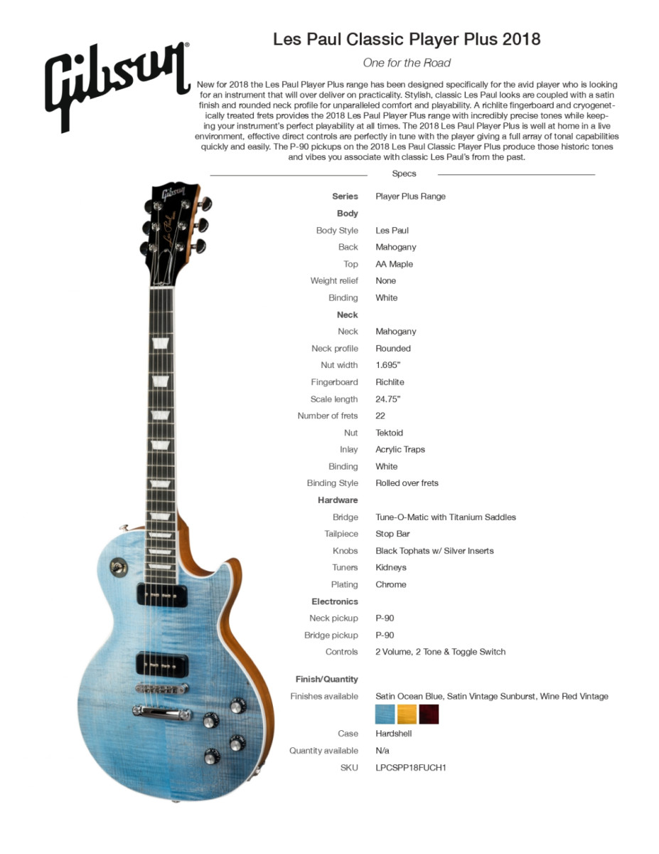 Gibson Les Paul Classic Plus de 2018. En muy buen estado. Con el mástil tipo 50s. El acabado es tipo faded, lo que se nota sobre todo al tacto en el mástil al tocar. Este modelo lleva diapasón de Richlite. Tiene alguna pequeña marca de uso en la parte trasera.