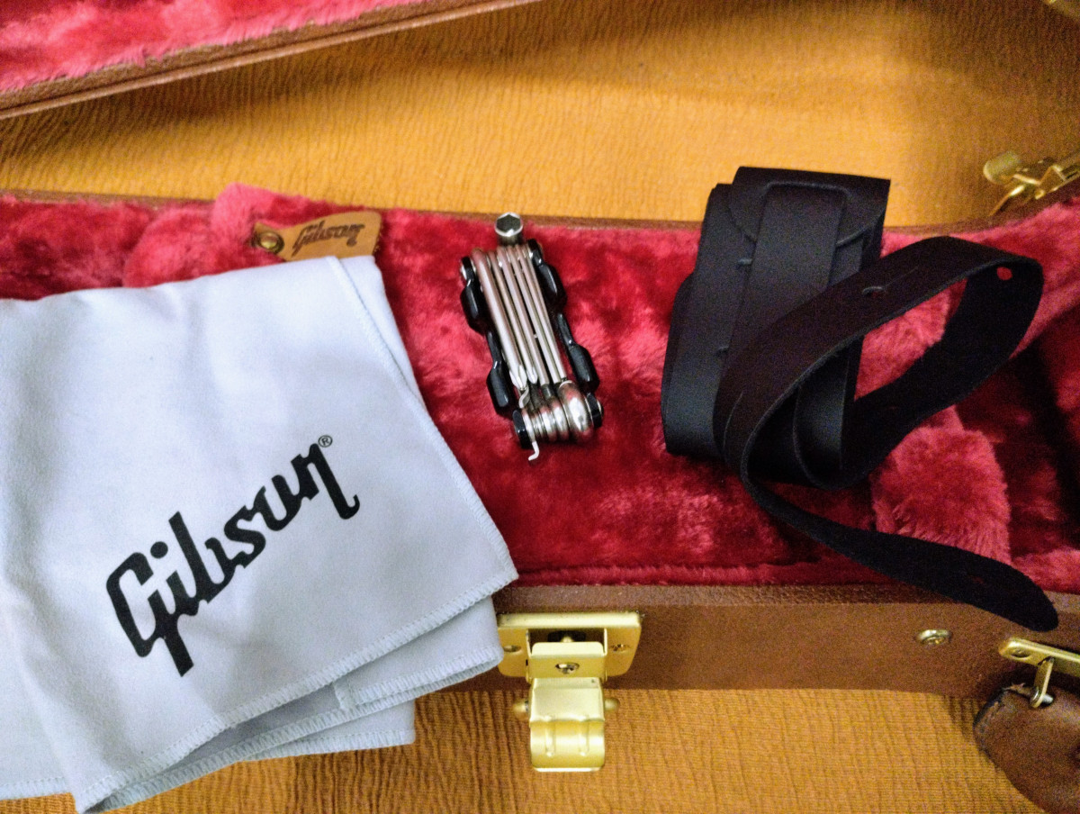 Incluyo todo lo que venía con la guitarra al comprarla, y que se puede ver en las fotos.