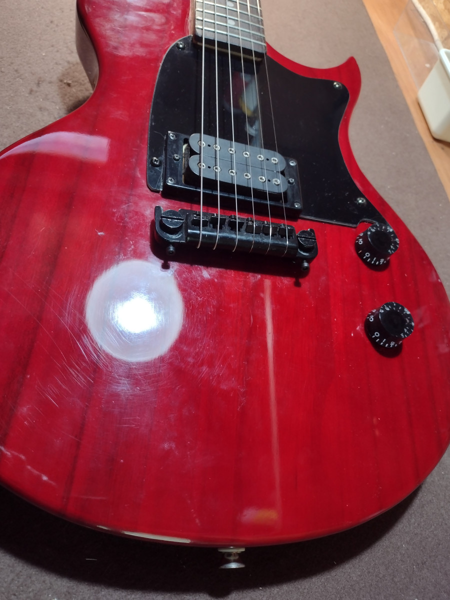lp muy bien ajustada,trastes nivelados y coronados diapason hidratado,muy comoda con accion baja,lista para tocar,tiene señales de uso,tambien cambio