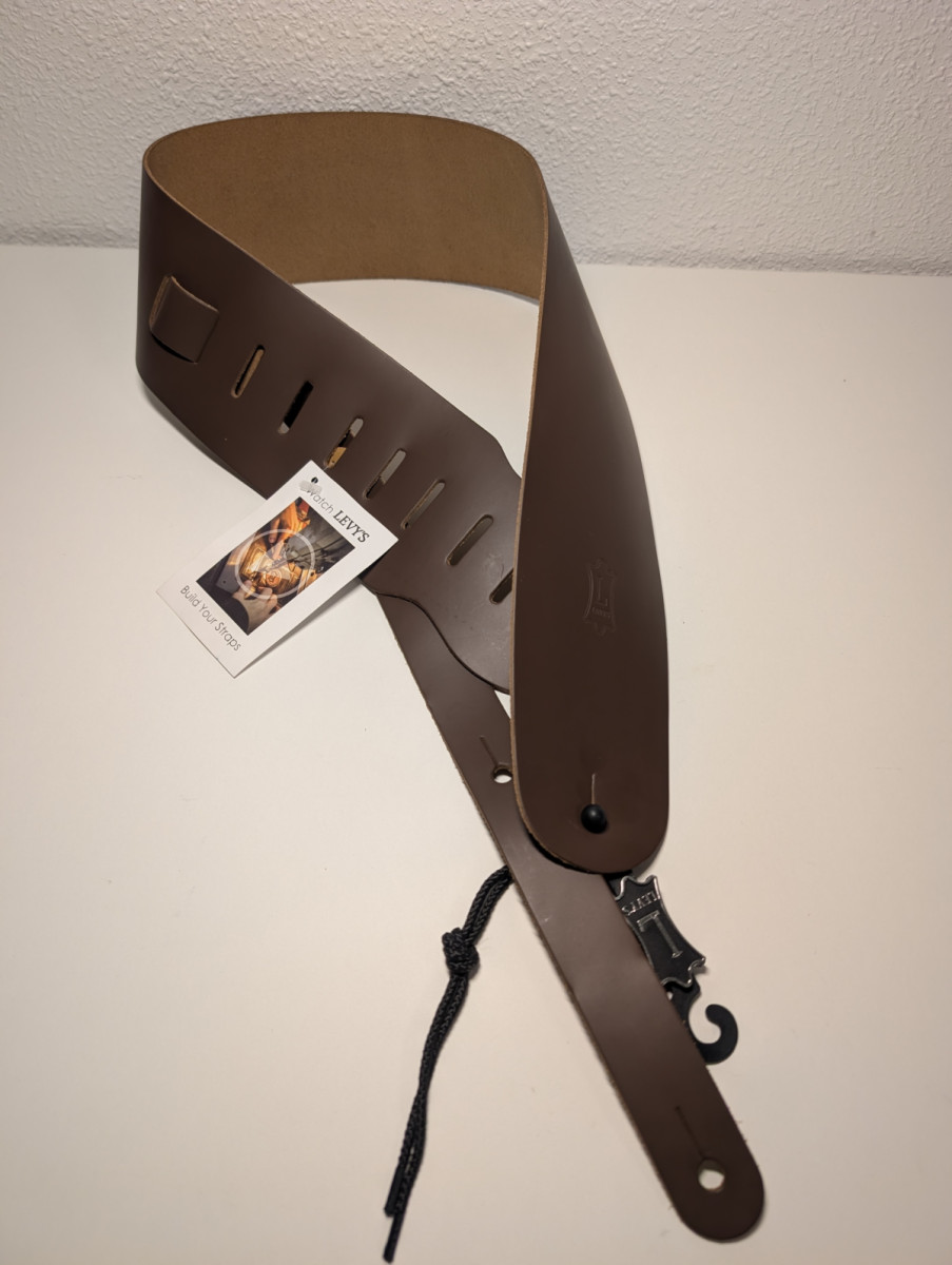 Correa de guitarra de cuero marrón de la marca Levy's.