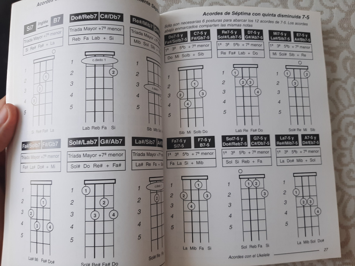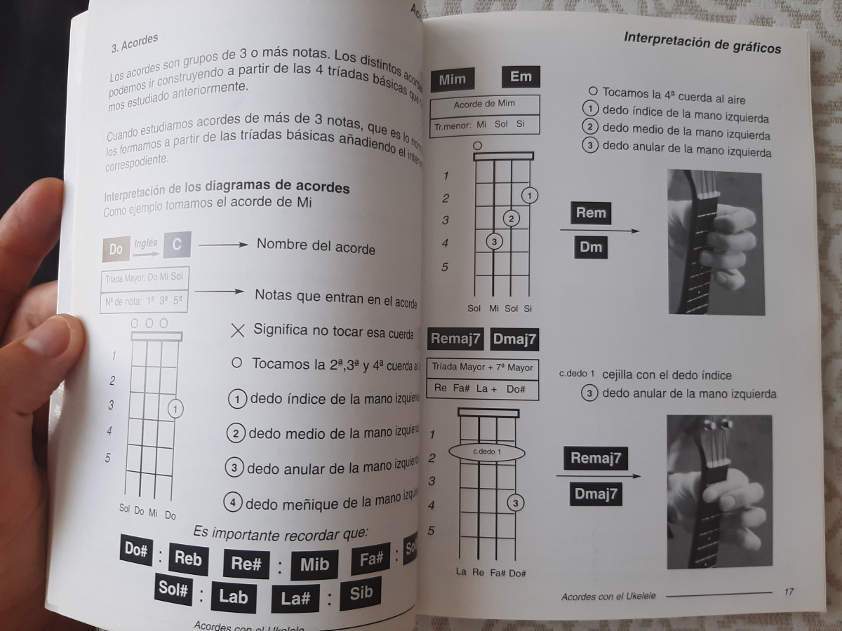 Libro de 90 páginas con una guía con diagramas de acordes de todo tipo, desde los básicos a los más avanzados y que incluye una introducción a la teoría musical. Tanto para principiantes como para ukelelistas experimentados. Muy poco uso, como nuevo y forrado! Autor Pedro Velázquez Abós.