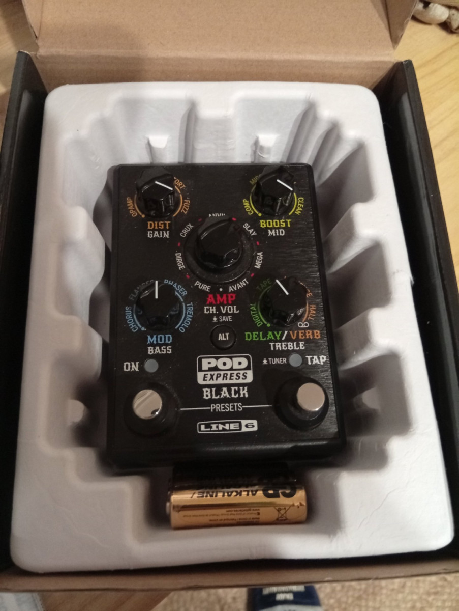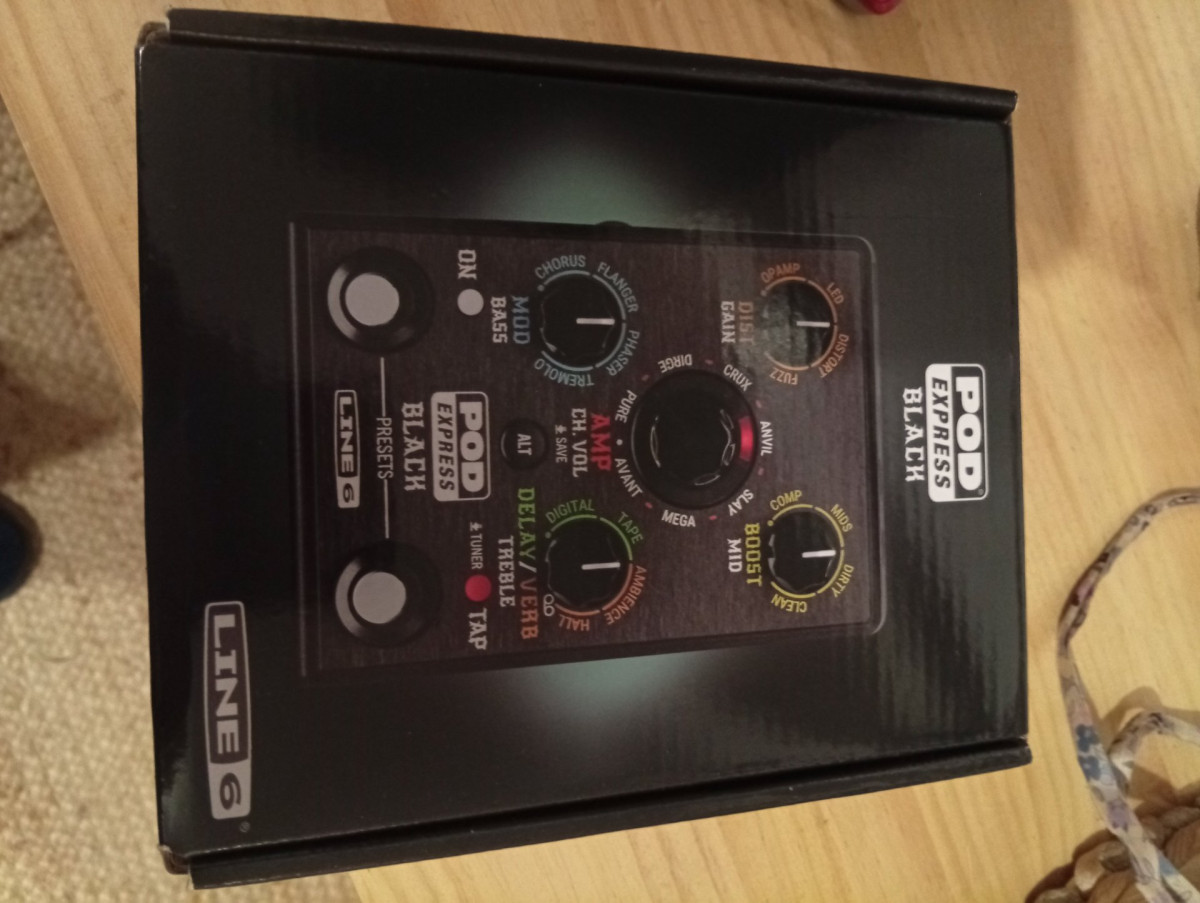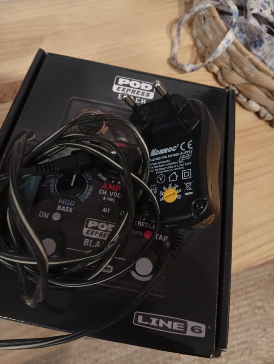 Line 6 pod express black en perfecto estado.No ha salido de casa y tiene menos de un año.Siempre usado en escritorio sin pisar.Va con caja, papeles, pilas sin abrir e incluyo alimentador ( en tienda no se incluye) incluyo envio