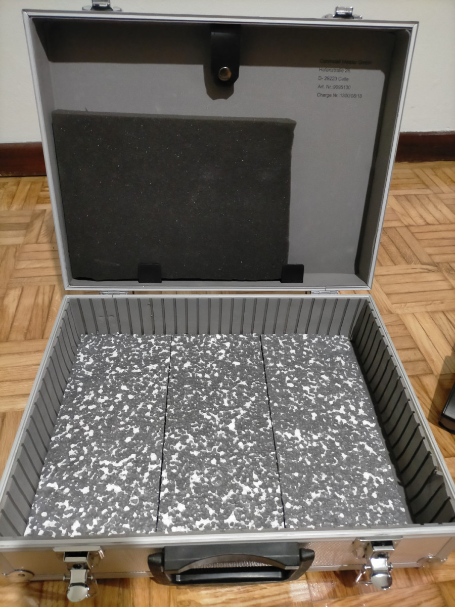Si se quiere entrego con maletín de aluminio con protecciones, además de cable y adaptador para conexión a DI por 25€ más.