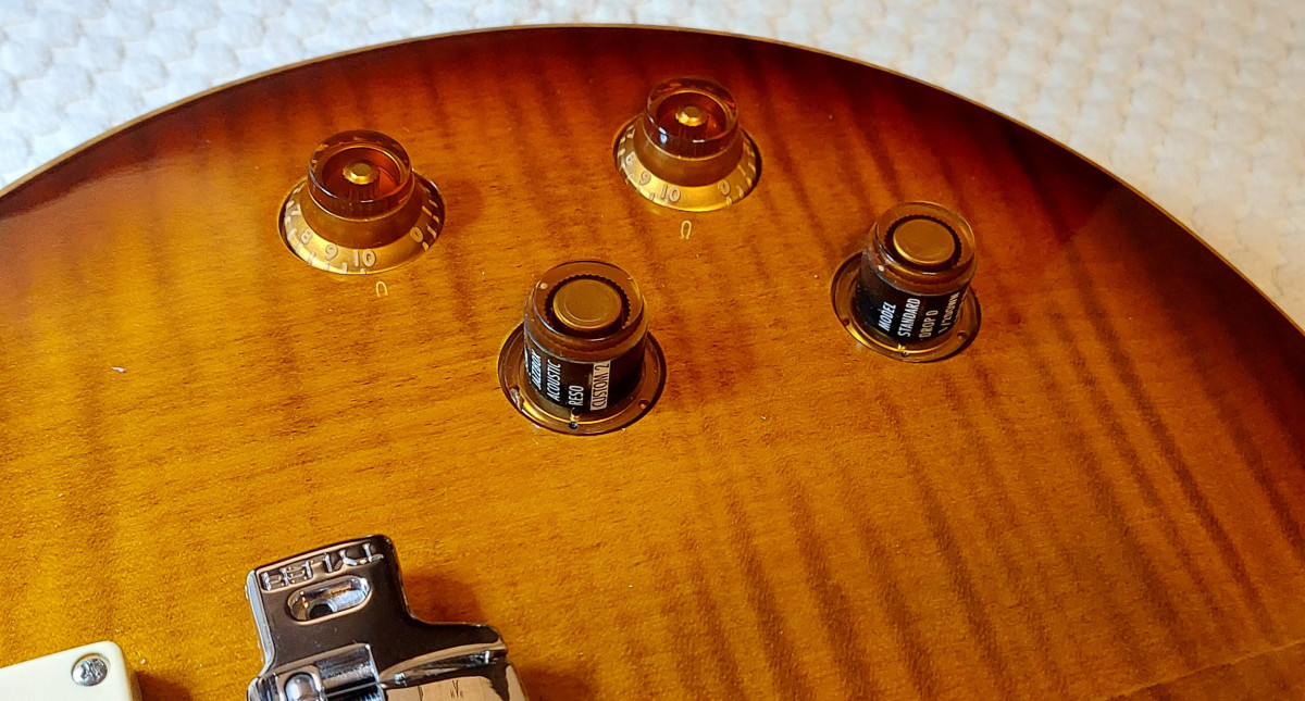 Guitarra de emulaciones, fabricada por Line6 según el diseño de James Tyler, antes de que Yamaha adquiriese Line6.