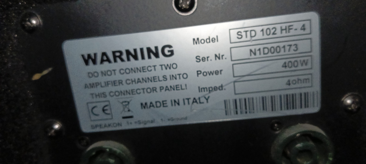 Tanto el amplificador cuanto la pantalla son de fabricación italiana. Equipo de sobra conocido, en estado impecable y con muy poco uso.