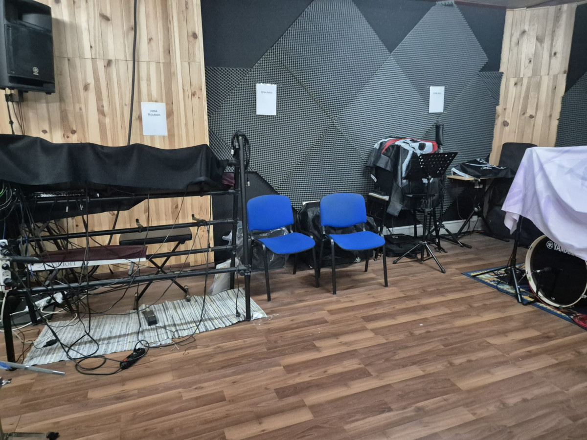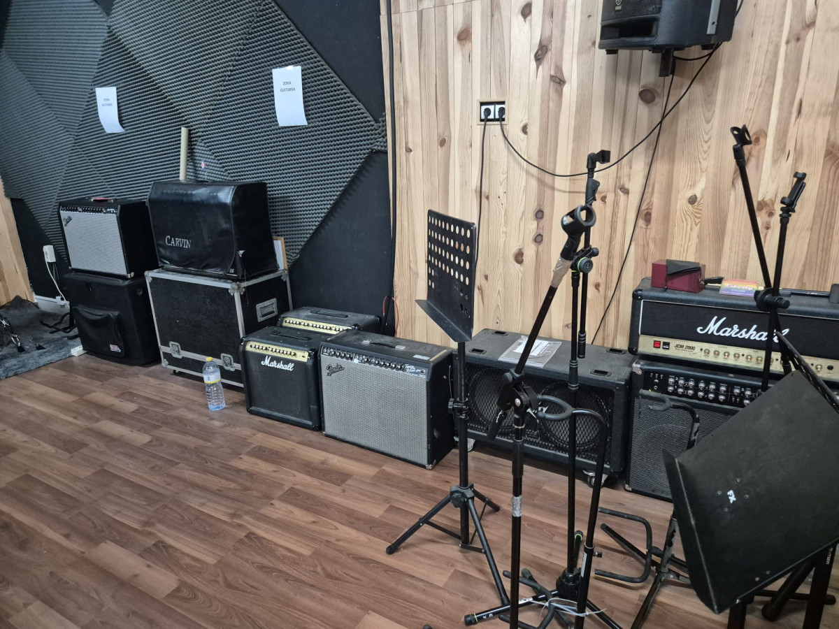 Equipada con una Room de grabación y local de ensayo aparte con aire acondicionado, donde puedes dejar tus instrumentos.