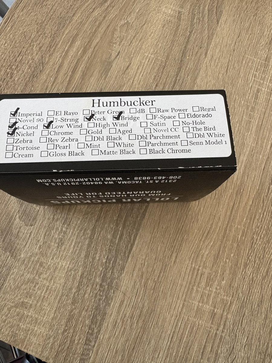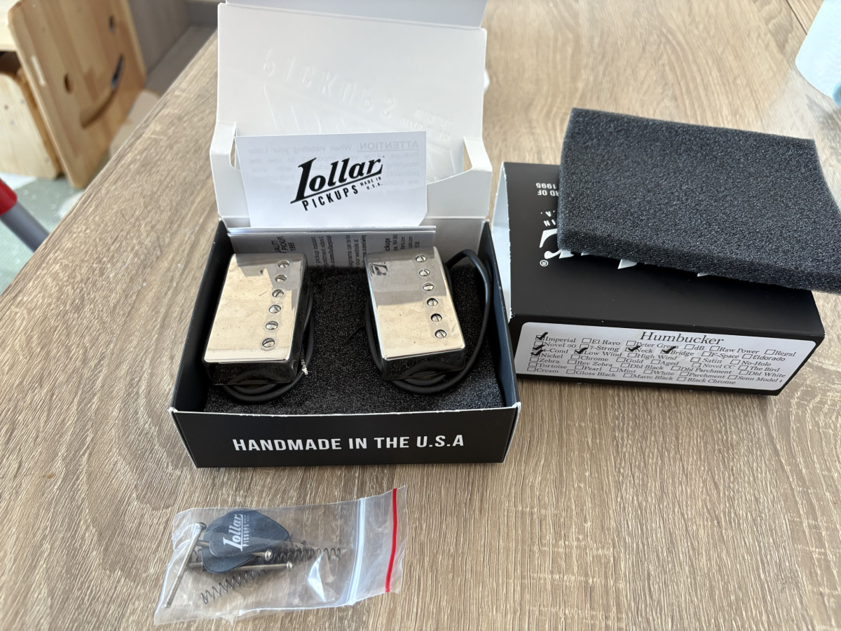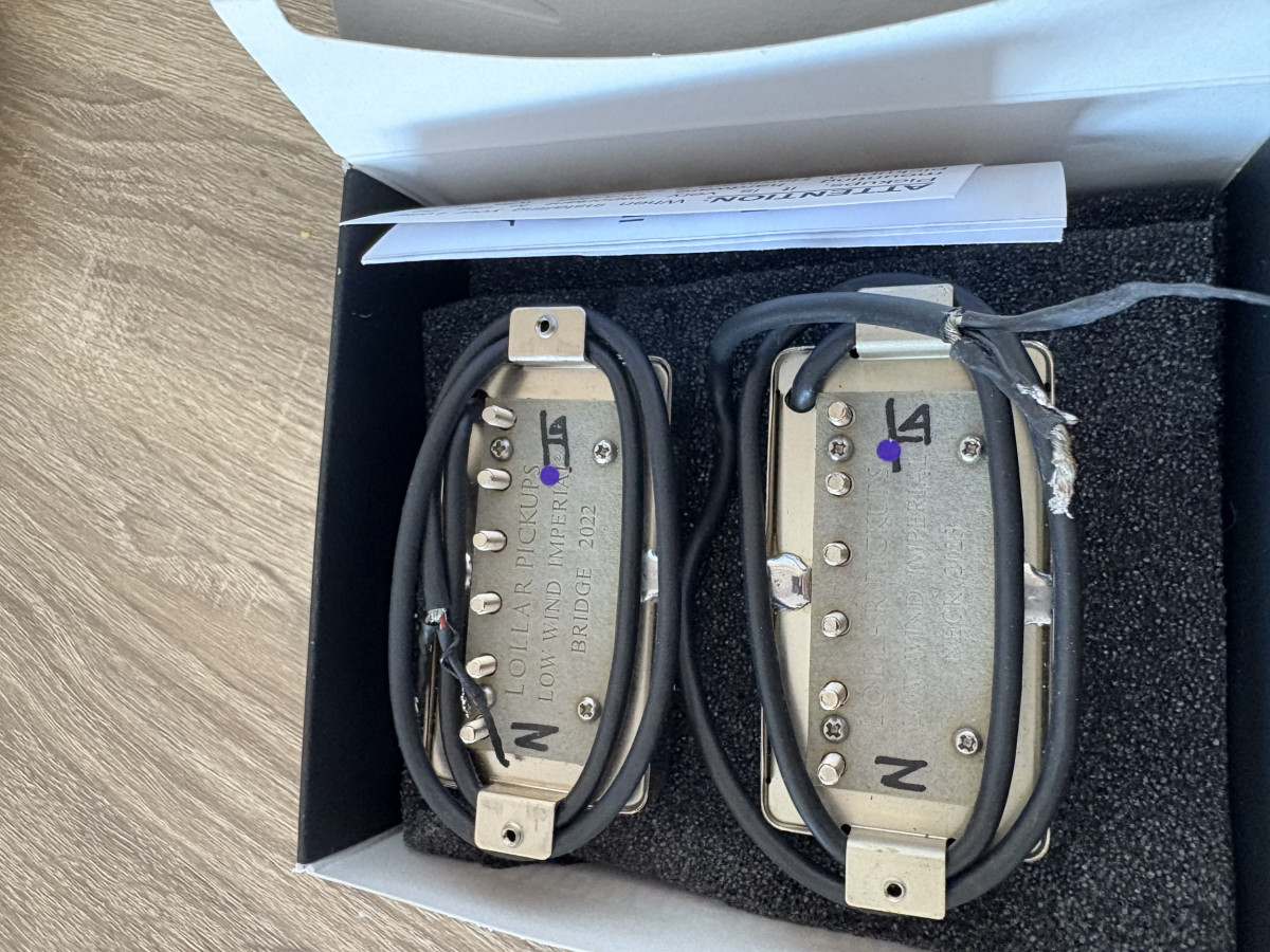 Vendo set de pastillas humbuckers Lollar Imperial Low Wind. De salida media, muy brillantes y definidas, pensadas para guitarras huecas o semi-huecas (aunque he visto demos de gente que las ha puesto en Les Pauls o PRS y suenan de escándalo también allí.