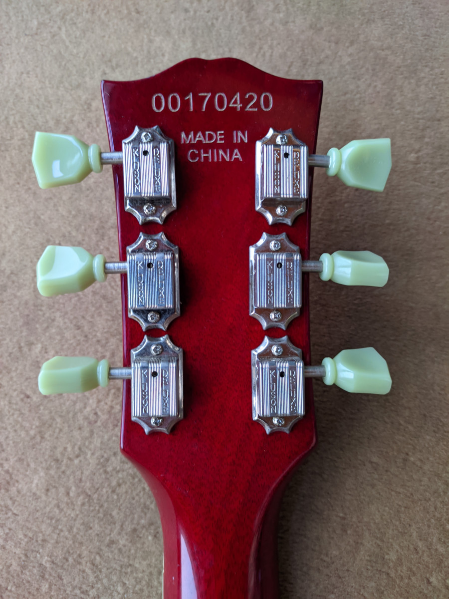 - Cuerpo y mástil de caoba y diapasón de palisandro, elaborado en China por jaceymusic1@gmail.com.