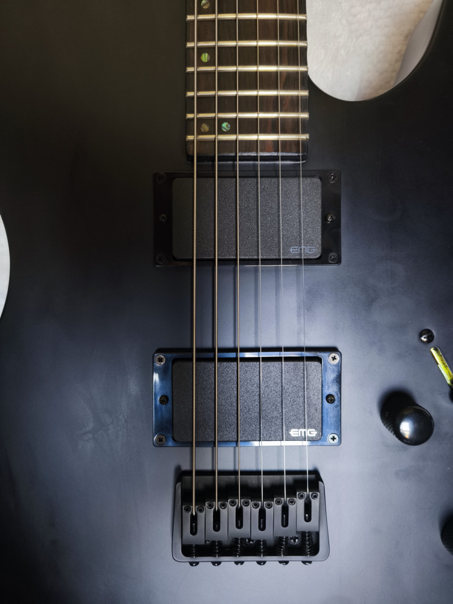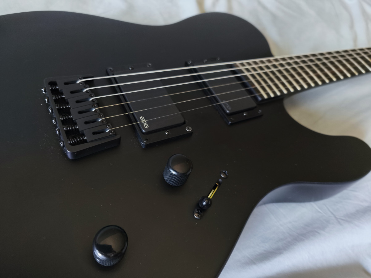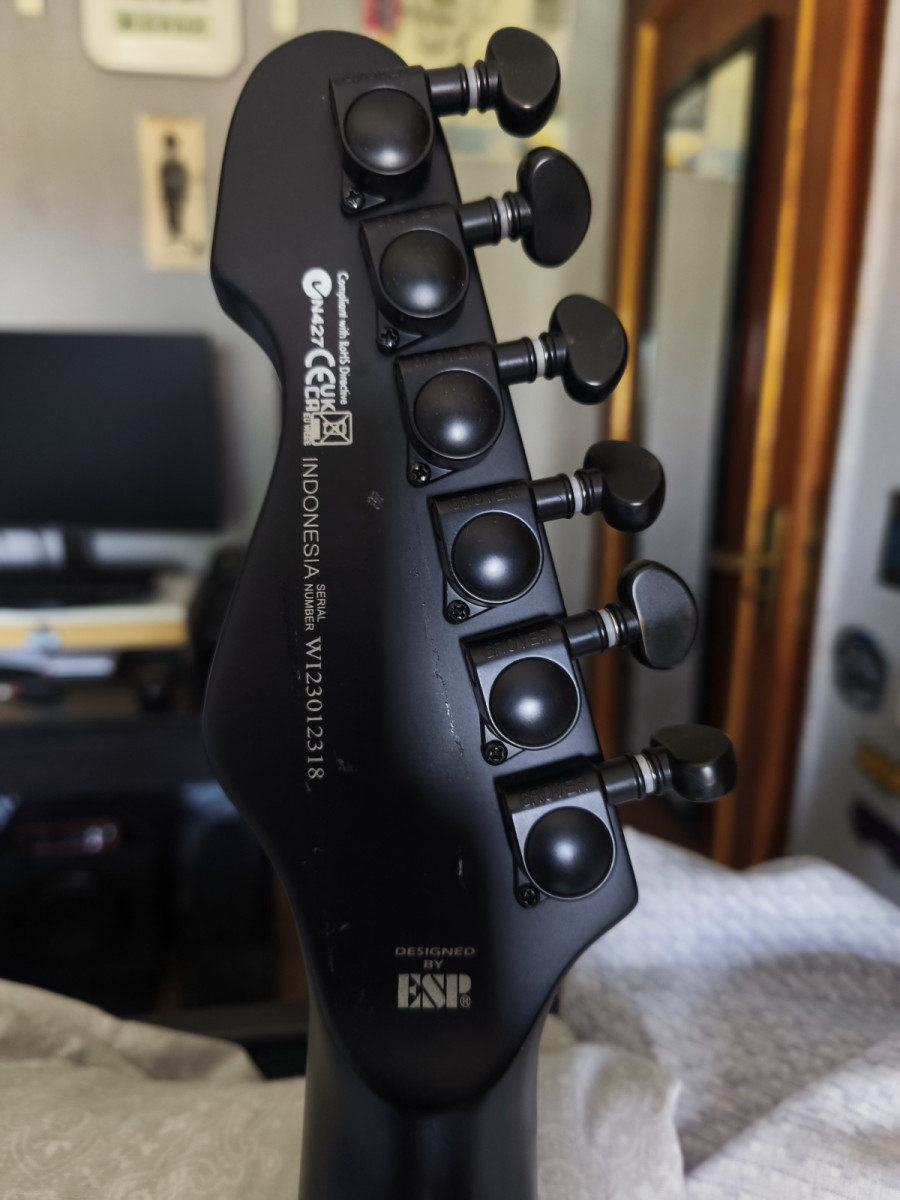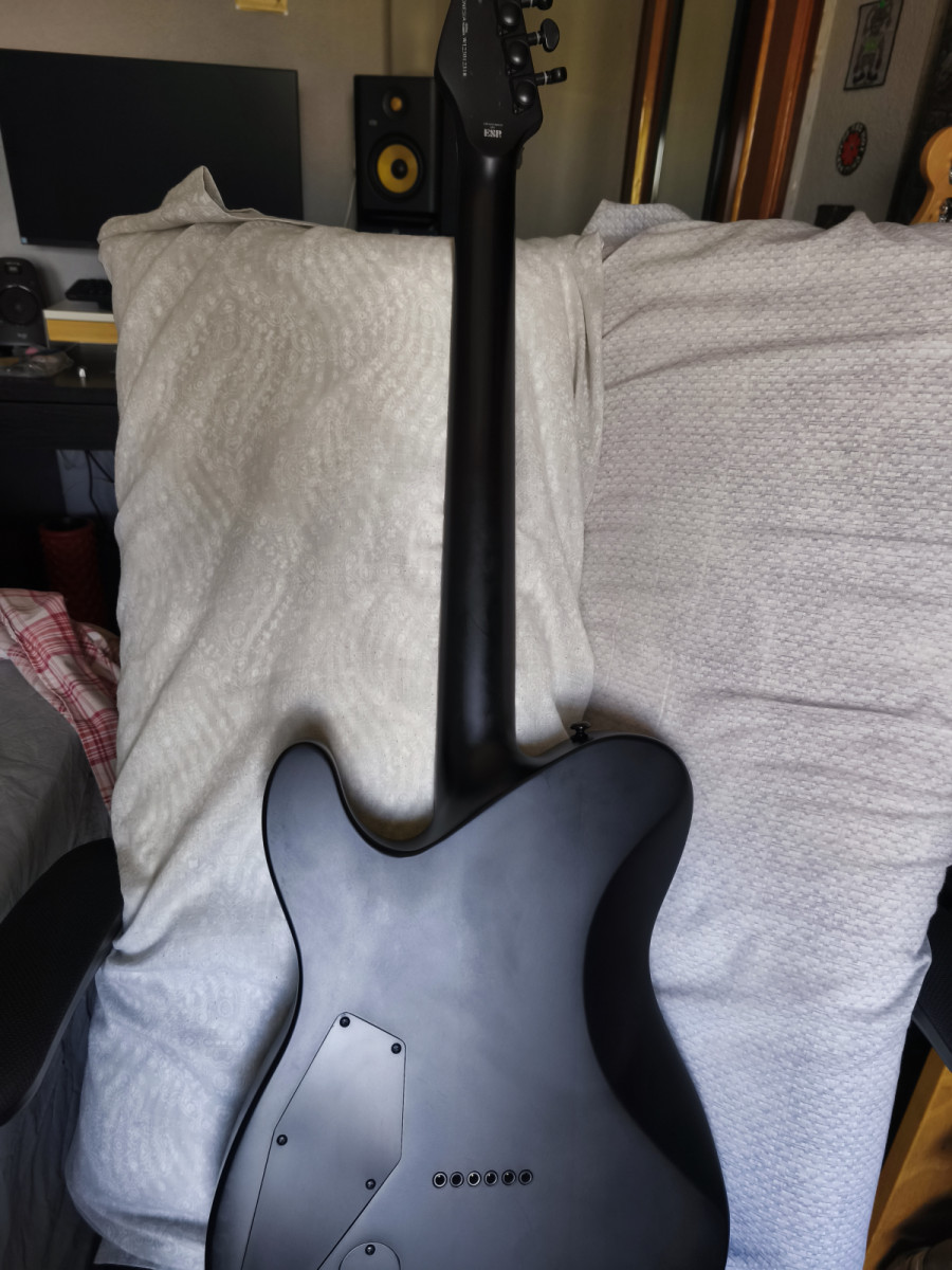 Hola , como se puede ver la guitarra esta en perfecto estado excepto por las marcas de las manos (que es inevitable) y algún traste que raspa un poco, por los bordes. No ha salido de casa.