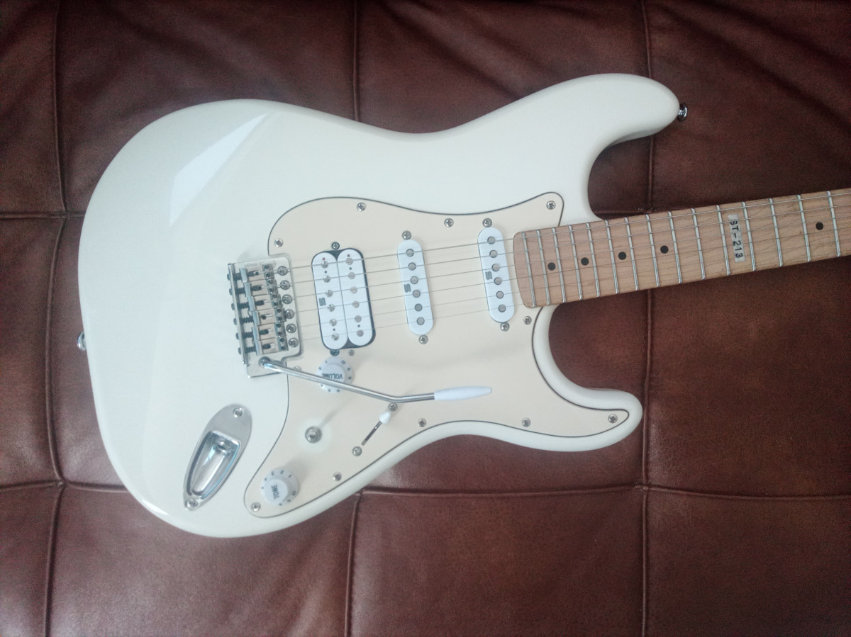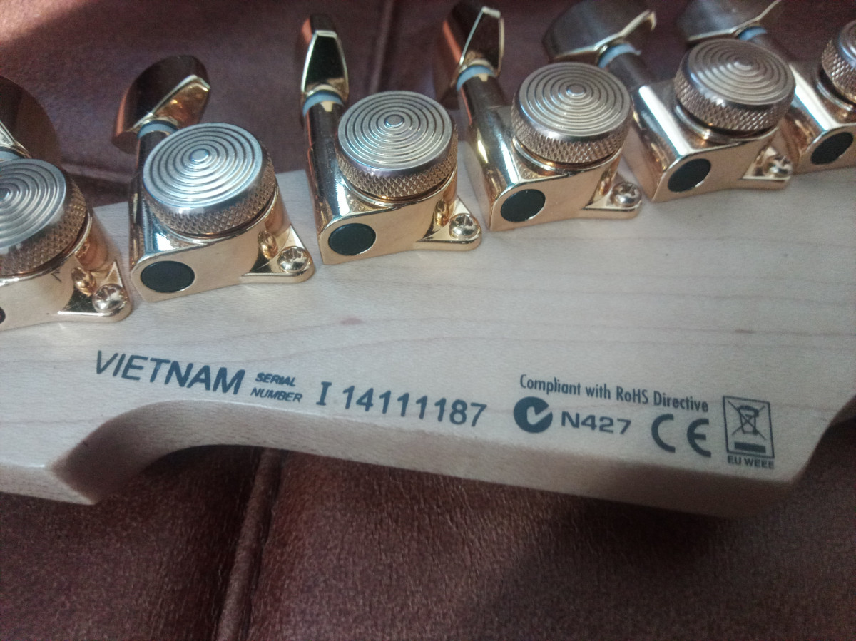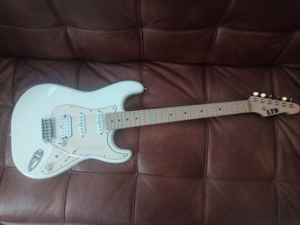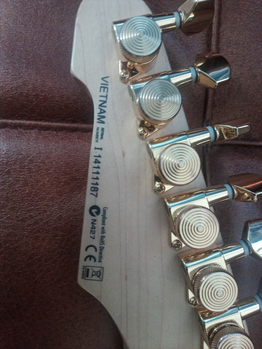 está modificada con las pastillas circuitería y potenciómetros de seymour Duncan Hyperion, puente Wilkinson (ajustado para que vaya hacia delante y hacia atrás) y clavijeros con bloqueo. cualquier cosa que necesitéis os informo, va con funda blanda