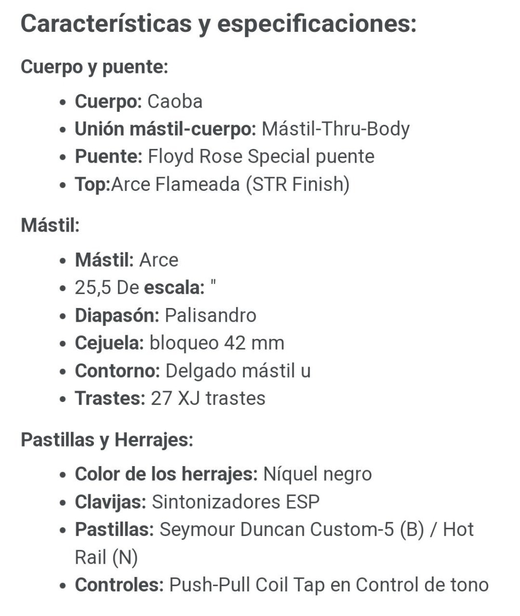Vendo guitarra eléctrica ESP LTD MH-327, en perfecto estado, sin dings, rayas, ni nada, aún lleva los plásticos traseros puestos. Solo un poco de desgaste en la zona del puente, como suele pasar en estas guitarras. Nunca ha salido de casa...Especificaciones en la última imagen.