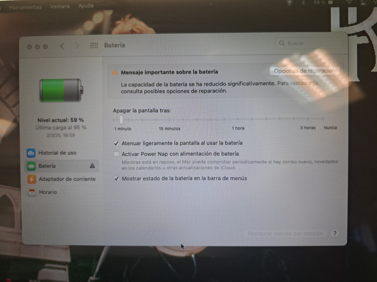 Sale un aviso de la batería pero aun así tiene horas de autonomía y carga perfectamente.