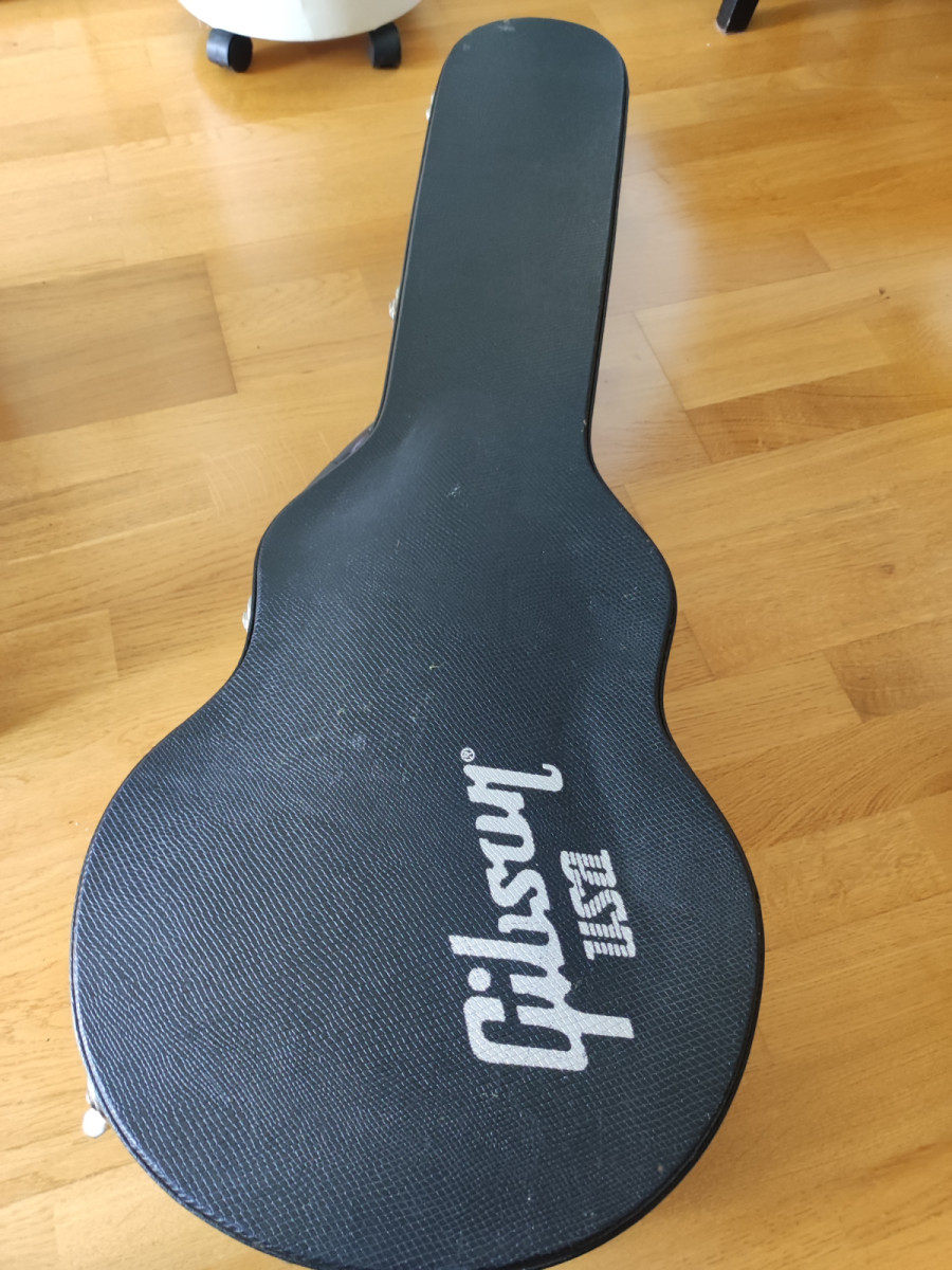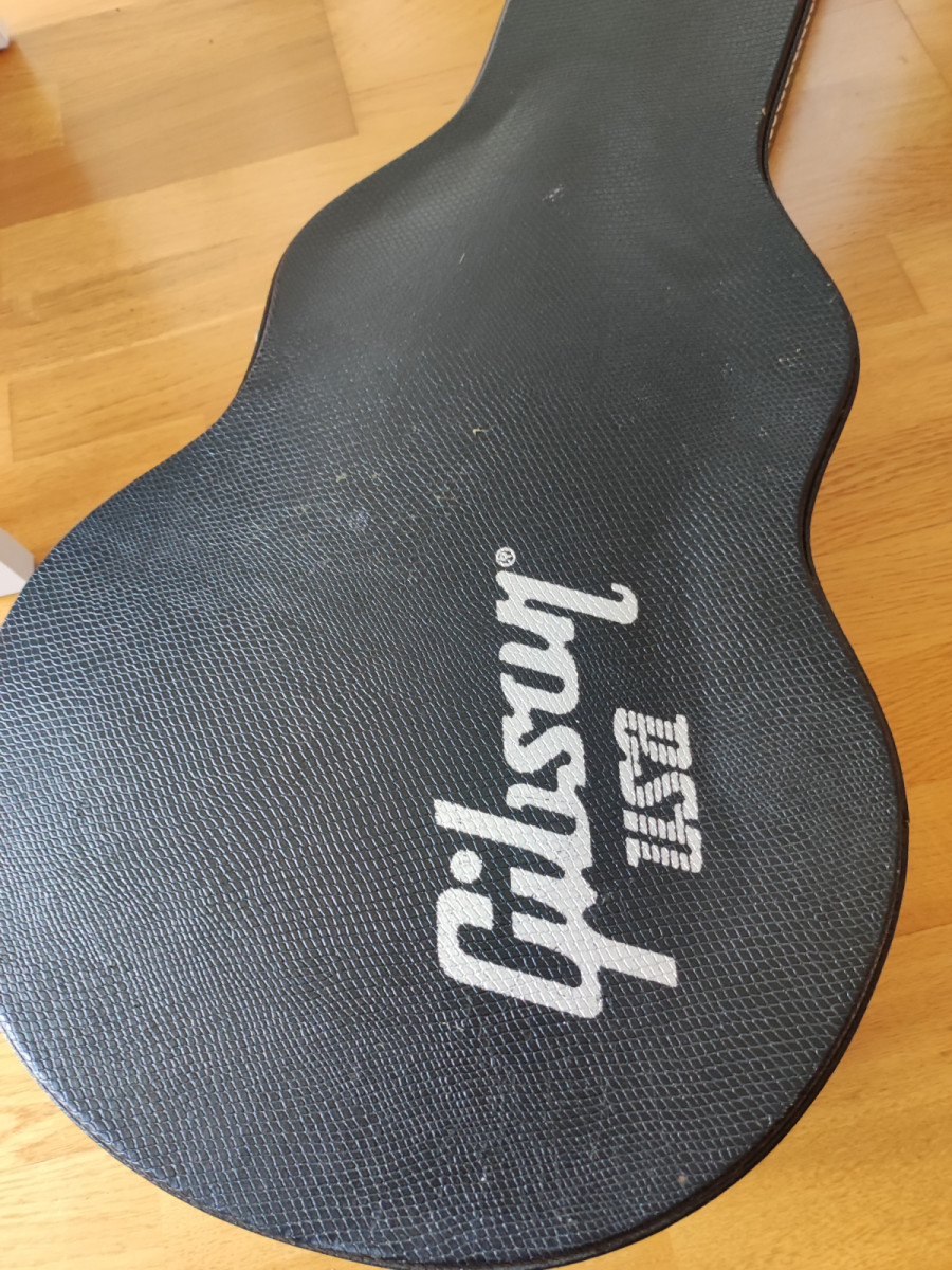 Preciosa funda rígida original para guitarra Gibson Les Paul, en buen estado. Tiene sus pequeños toques, que para eso es.