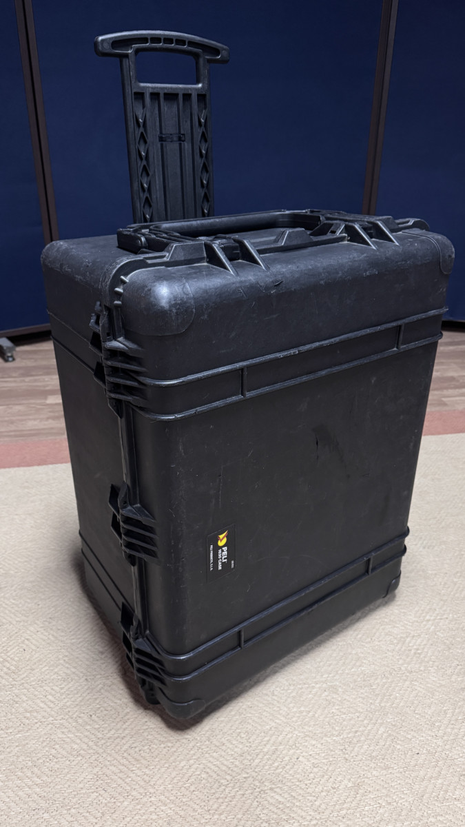 Maleta robusta Peli 1630 de color negro, sin espuma. Se encuentra en buen estado, con algunas señales de uso pero como nueva, solo se ha usado en una gira.