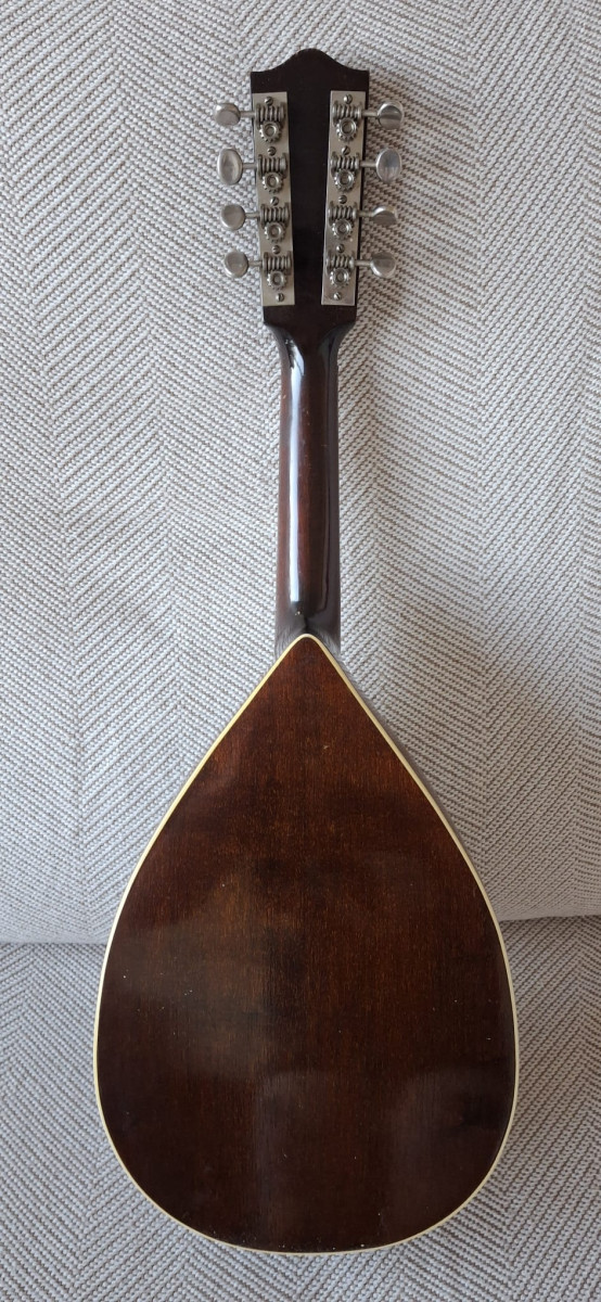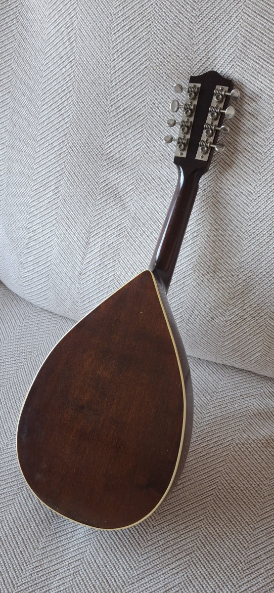 Vendo a precio de derribo esta preciosa mandolina vintage, de la respetada marca Levin. Es una Model 55, de 1949. Como es lógico tiene "heridas de guerra" debido a sus 76 años, pero está perfecta a nivel estructural. Está recién ajustada, clavijas lubricadas y sonando como un cañón para bluegrass o lo que se le eche. Trastes enteros y cejuela perfecta. Contorno trasero del mástil ligeramente en V, con su funda de tela original. Una joyita de finales de los 40!