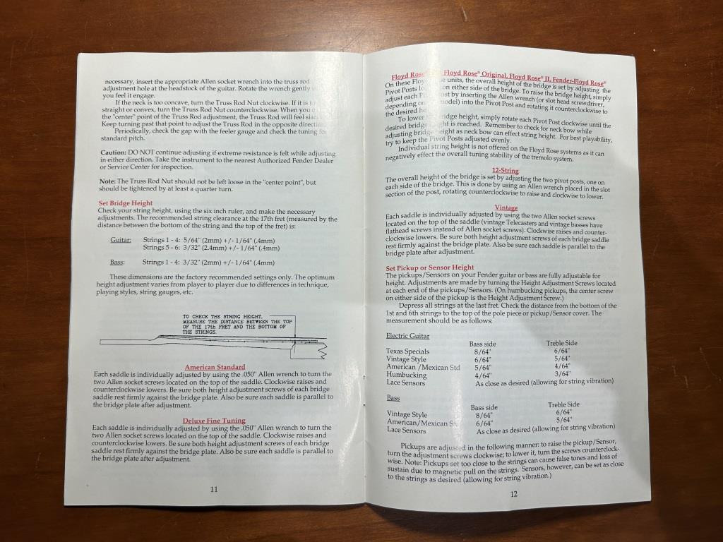 Manual de instrucciones original Fender USA, para guitarras y bajos.