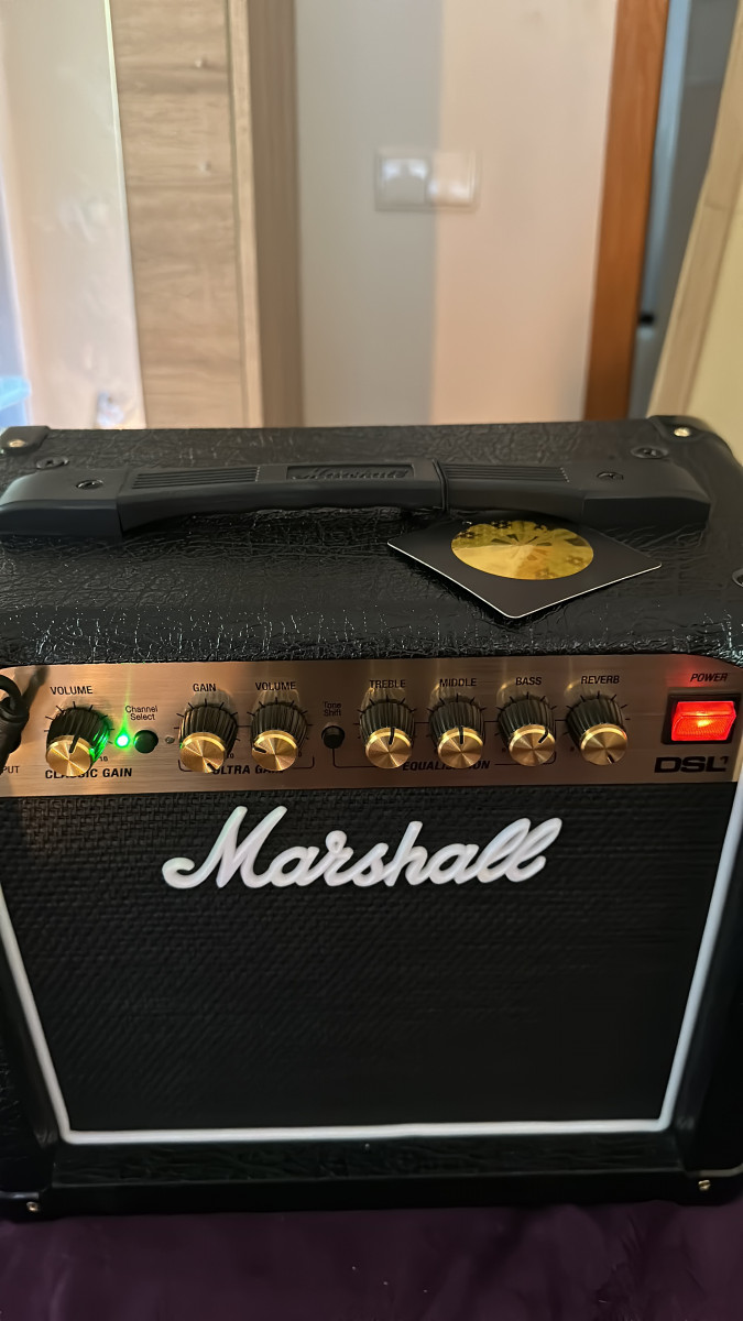 Vendo este pequeño Marshall DSL1 en formato combo. Para tocar en casa es una maravilla; no pesa nada, cabe en cualquier sitio y con un 1watt y la capacidad de ponerlo a 0,1 watts, puedes tocar a bajo volumen sin problemas. Ademas la reverb incorporada que tiene es un añadido que se agradece mucho para tocar en casa si no tienes un pedal.