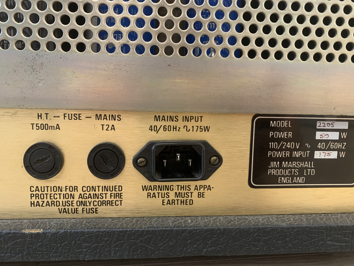 - Cabezal Marshall JCM 800 modelo 2205 50W (Motley Crue, RATM, Scorpions, etc.)